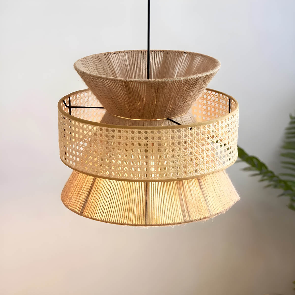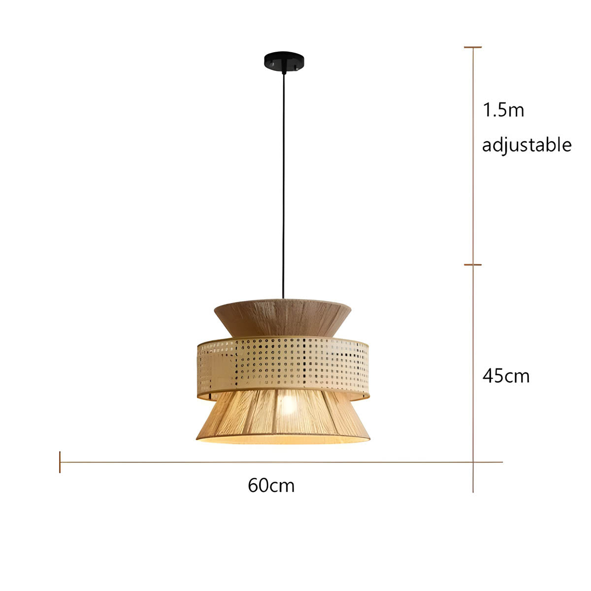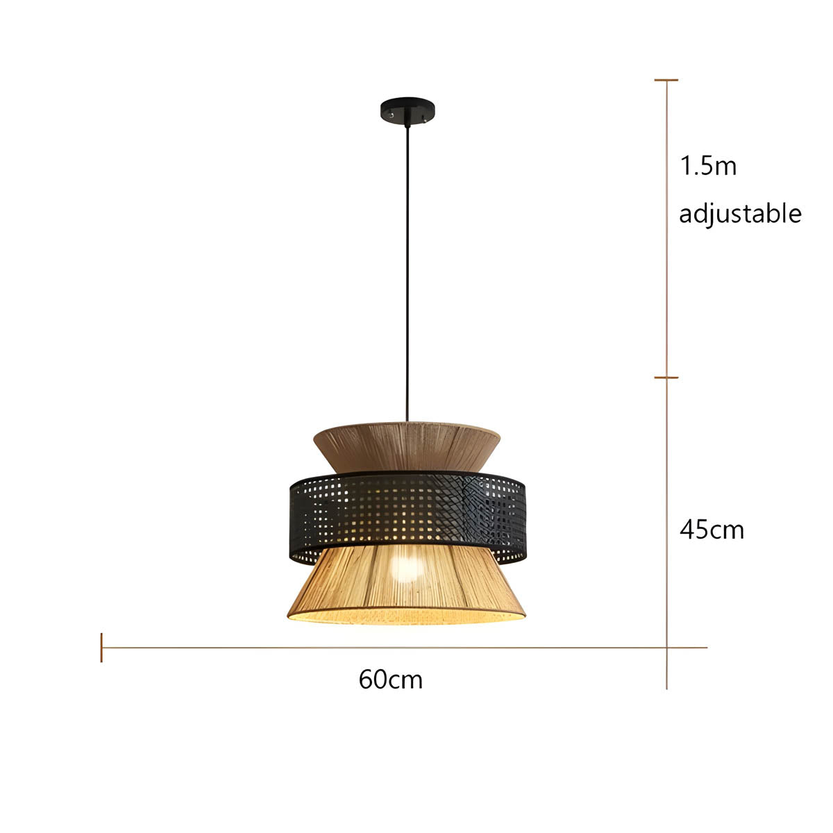 Elevate the ambiance of your space with AIKO, an elegant, handmade pendant light crafted from rattan and metal. Its Wabi-sabi style exudes vintage charm, making it perfect for coffee shops, restaurants, and rustic homes. Light up your space with a touch of sophistication.