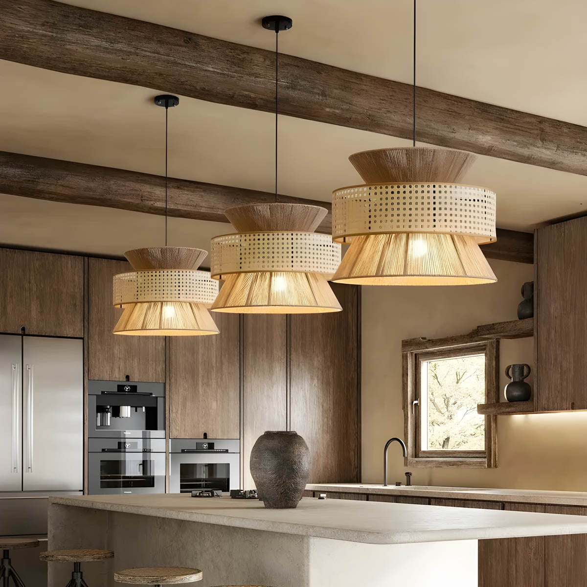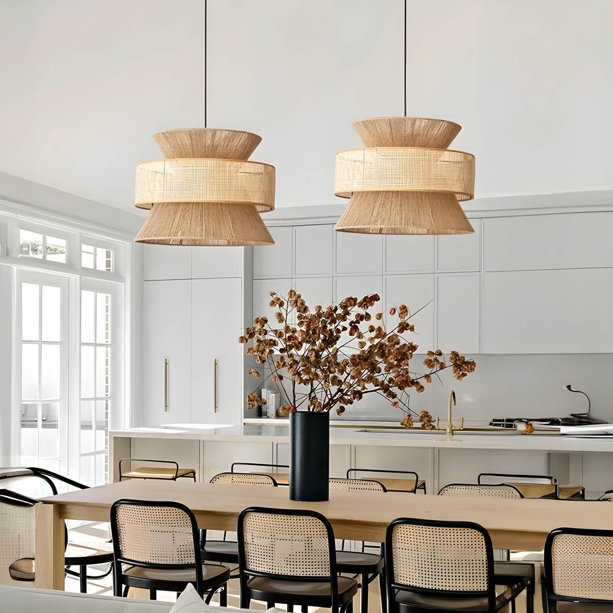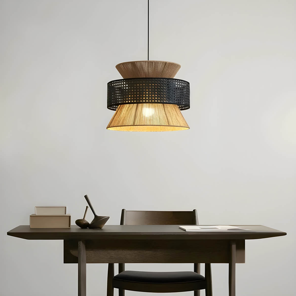 Elevate the ambiance of your space with AIKO, an elegant, handmade pendant light crafted from rattan and metal. Its Wabi-sabi style exudes vintage charm, making it perfect for coffee shops, restaurants, and rustic homes. Light up your space with a touch of sophistication.