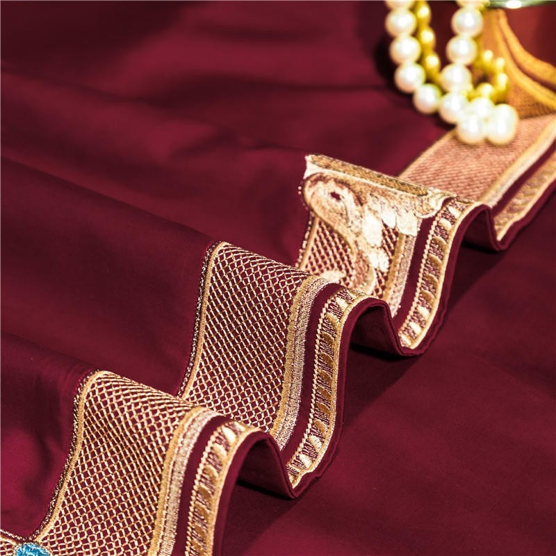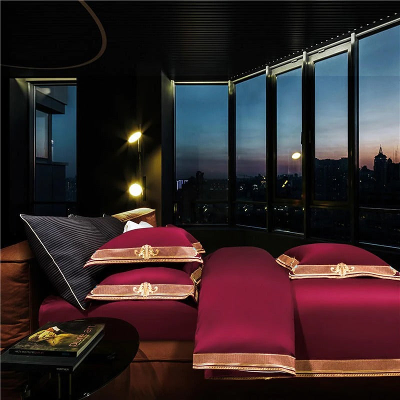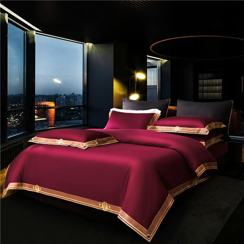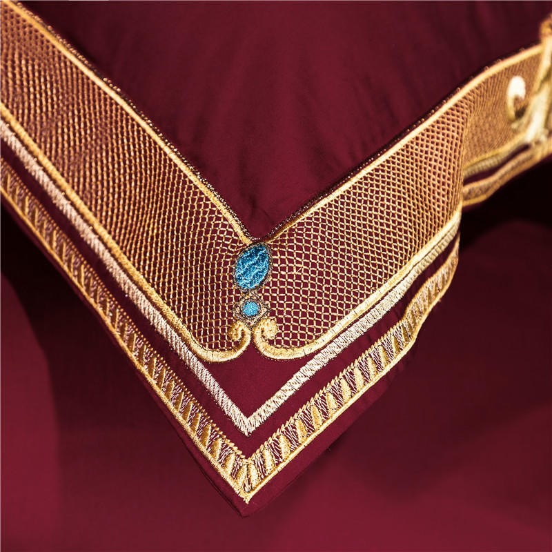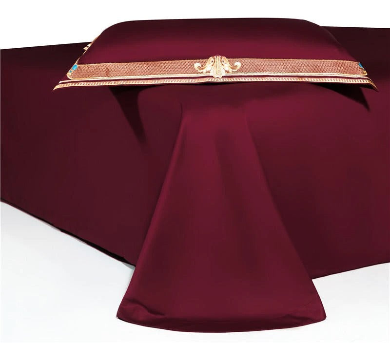 Anahi Red Embroidered Motif Border Egyptian Cotton Bedding Set