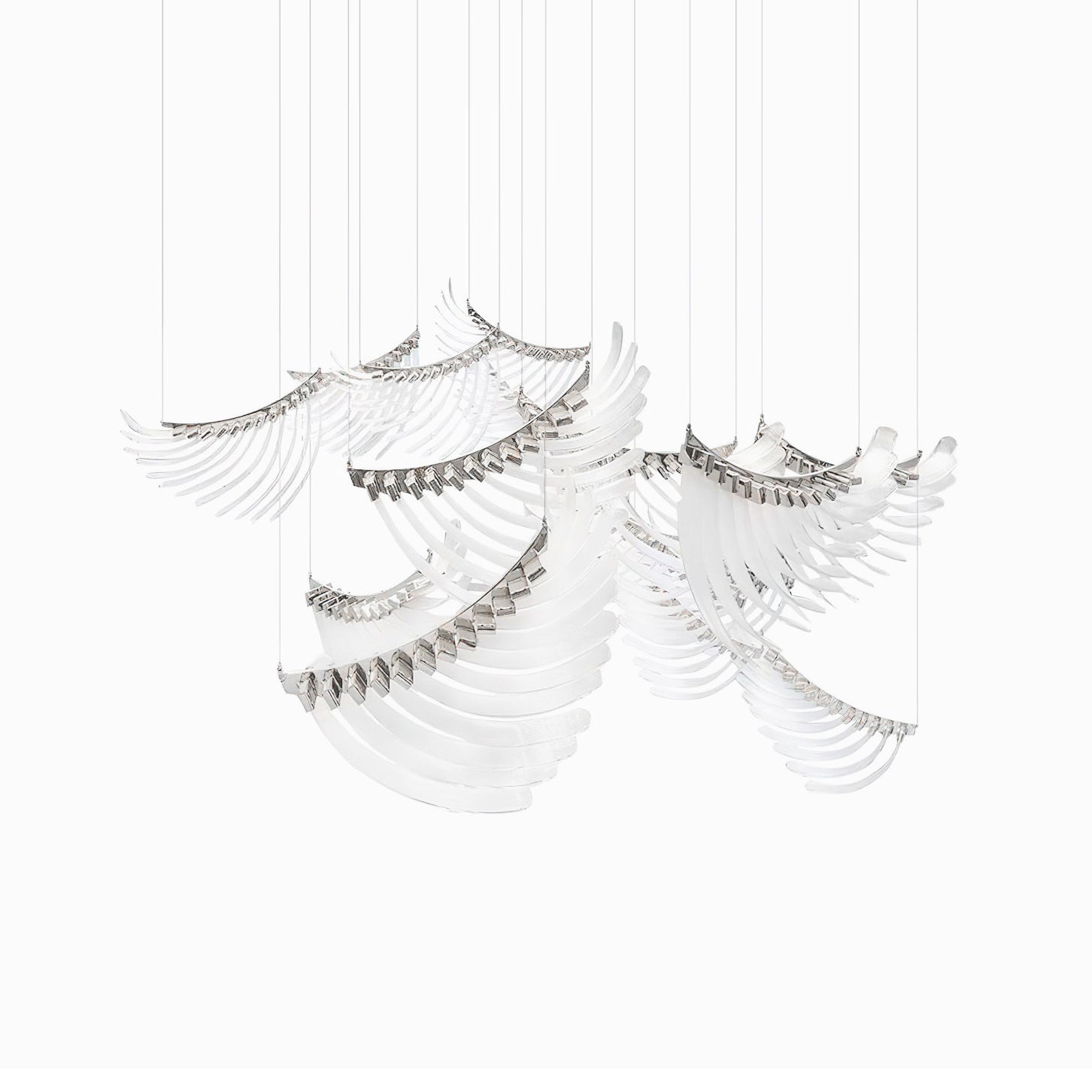 The Angel Wings Chandelier exudes elegance and a touch of ethereal beauty, with its delicate design that resembles the graceful spread of angel wings. Crafted from high-quality metal and glass, this chandelier brings a sense of serenity and sophistication to any room. The intricate details of the glass elements reflect light in a soft, mesmerizing way, making it a perfect centerpiece for spaces that seek to blend contemporary style with a hint of heavenly charm.