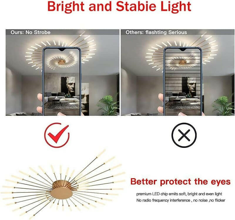 The Arvid - Modern Flower Shaped Ceiling Light is a stunning lighting piece that not only provides sufficient lighting, but also adds a touch of elegance and style to any room. With its creative fireworks design, this lamp offers 360-degree lighting that evenly illuminates the entire room.