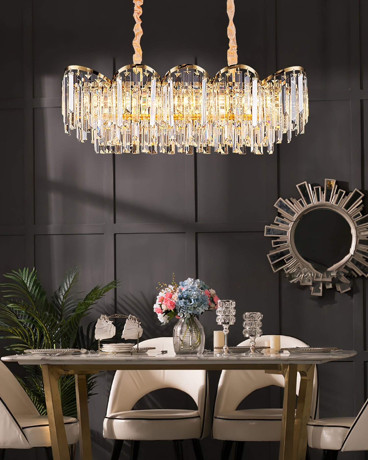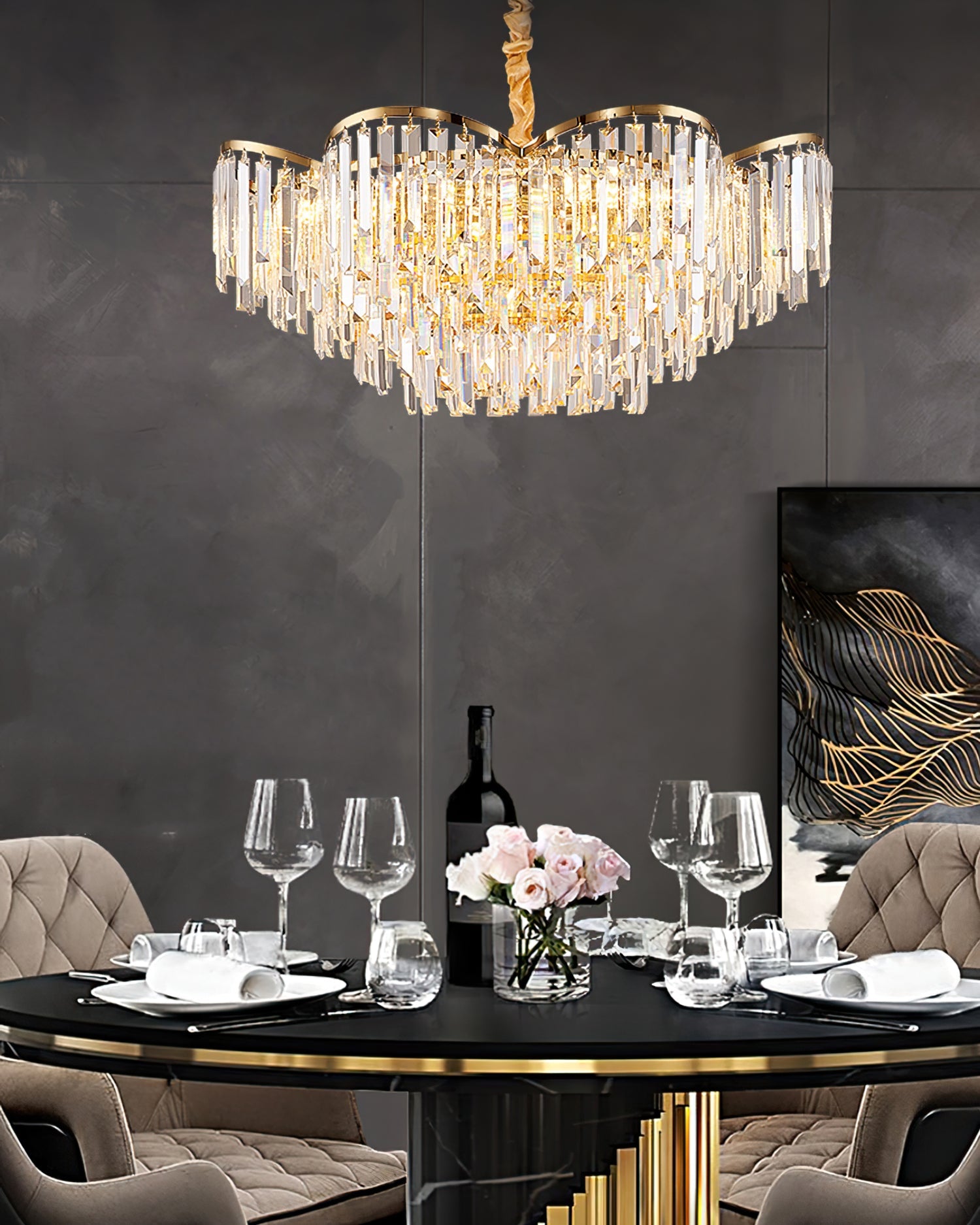 The Astraluxe Chandelier from dekorfine is a dazzling masterpiece that transforms any space into a luxurious haven. Crafted from high-quality metal and adorned with shimmering crystal prisms, this chandelier exudes elegance and sophistication. The cascading crystals catch and reflect light beautifully, creating a captivating display that enhances the ambiance of your room. Perfect for grand entrances, dining rooms, or living areas, the Astraluxe Chandelier is a statement piece that combines modern design with timeless glamour. Elevate your interior decor with this stunning chandelier from dekorfine.
