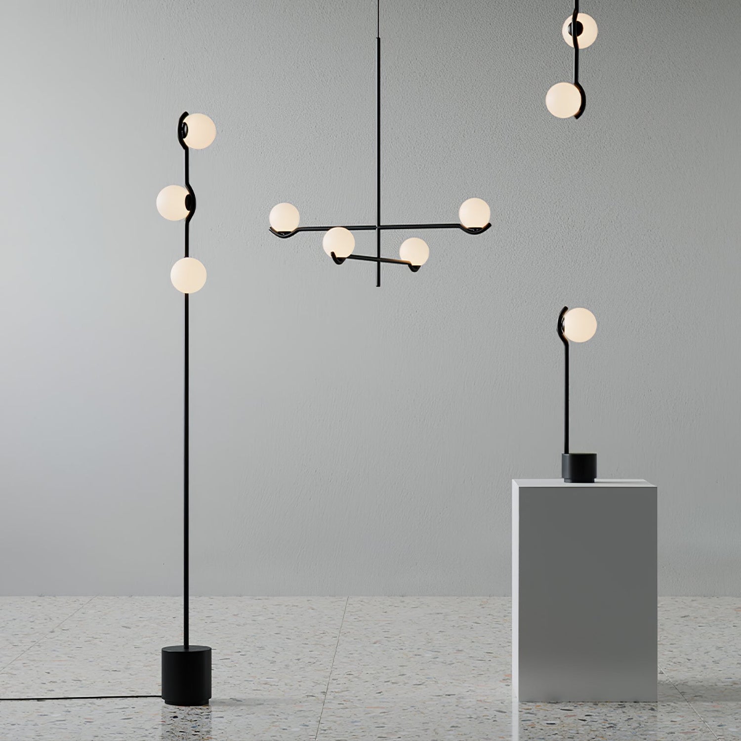The Baer Floor Light is a modern statement piece that looks just as stylish off as it does on. Offered in a variety of forms each fixture is constructed from iron in a black or gold finish and features slender rods with mounted opal glass shades giving the fixture a modern, geometric feel with a soft diffused glow. Baer is a one-of-a-kind piece that is both eye-catching and functional, bringing a contemporary and effortless charm to any setting from transitional to mid-century to modern and beyond.