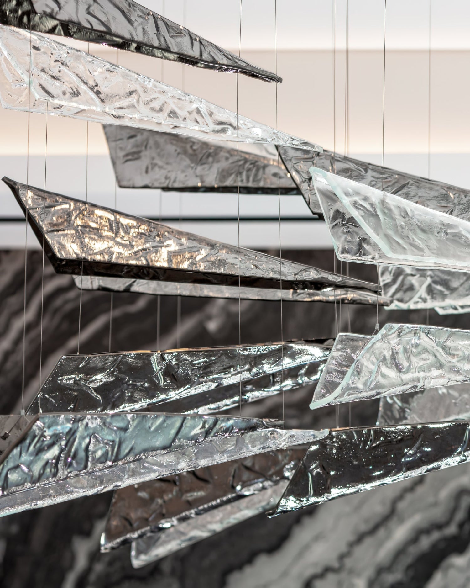 Experience the graceful beauty of nature with Breeze Chandelier. Inspired by the fluid movement of wind-blown leaves, this contemporary glass form adds an elegant touch to any space. Unleash the charm of the outdoors in your home with Breeze Chandelier.