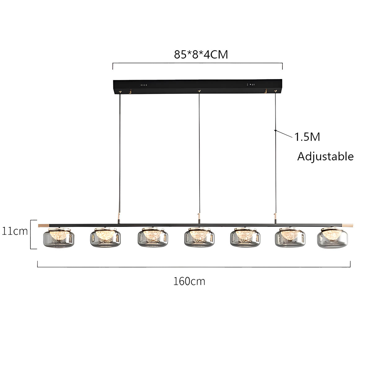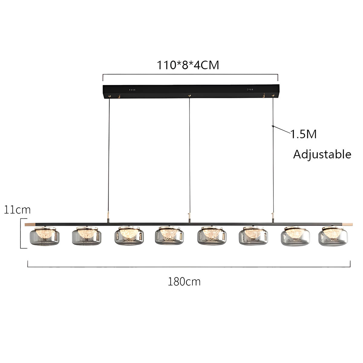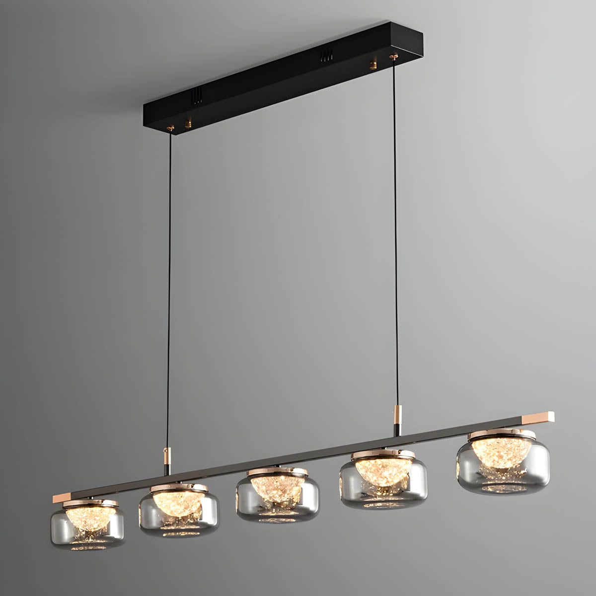 Crafted with iron, optical acrylic, and glass, these fixtures offer both durability and elegance.