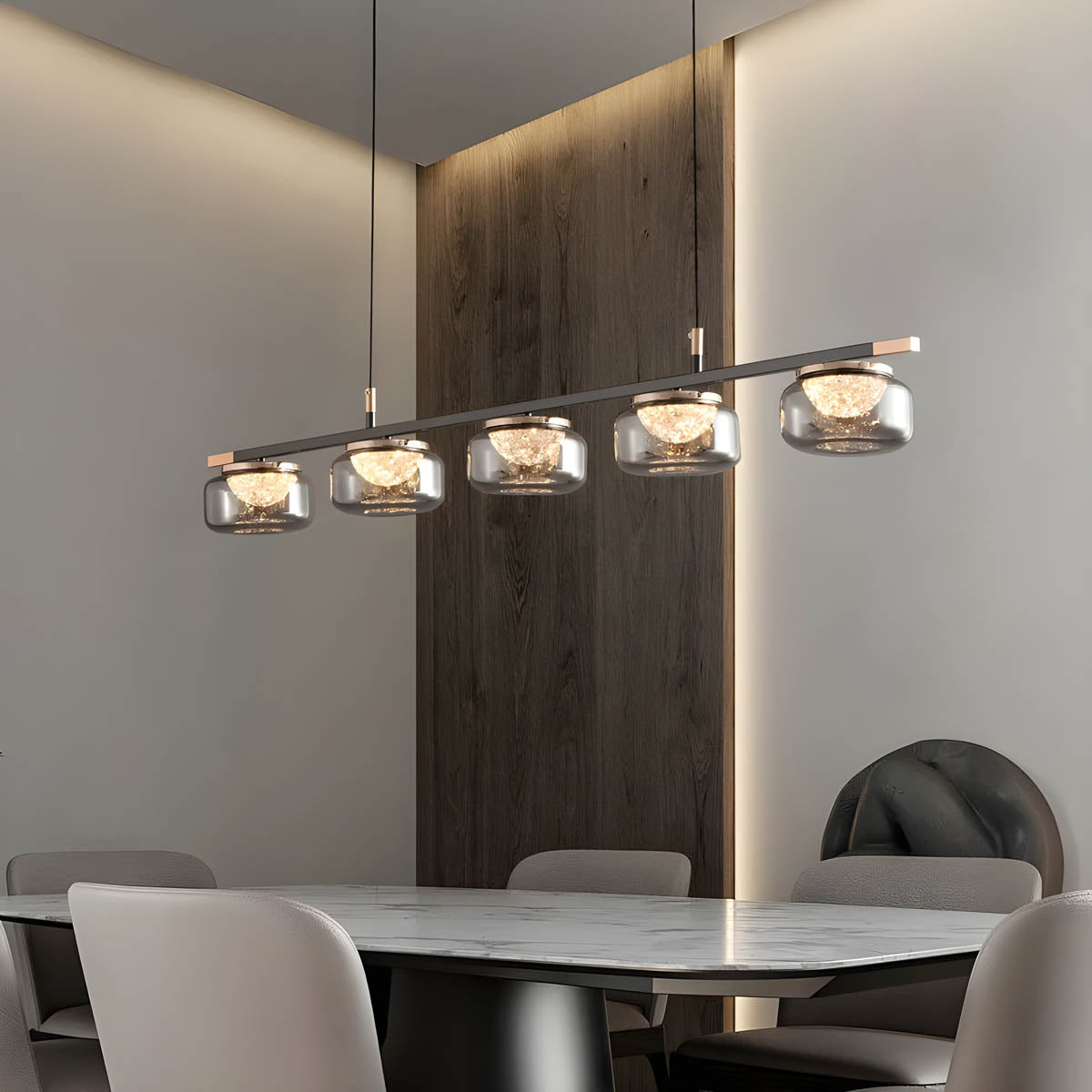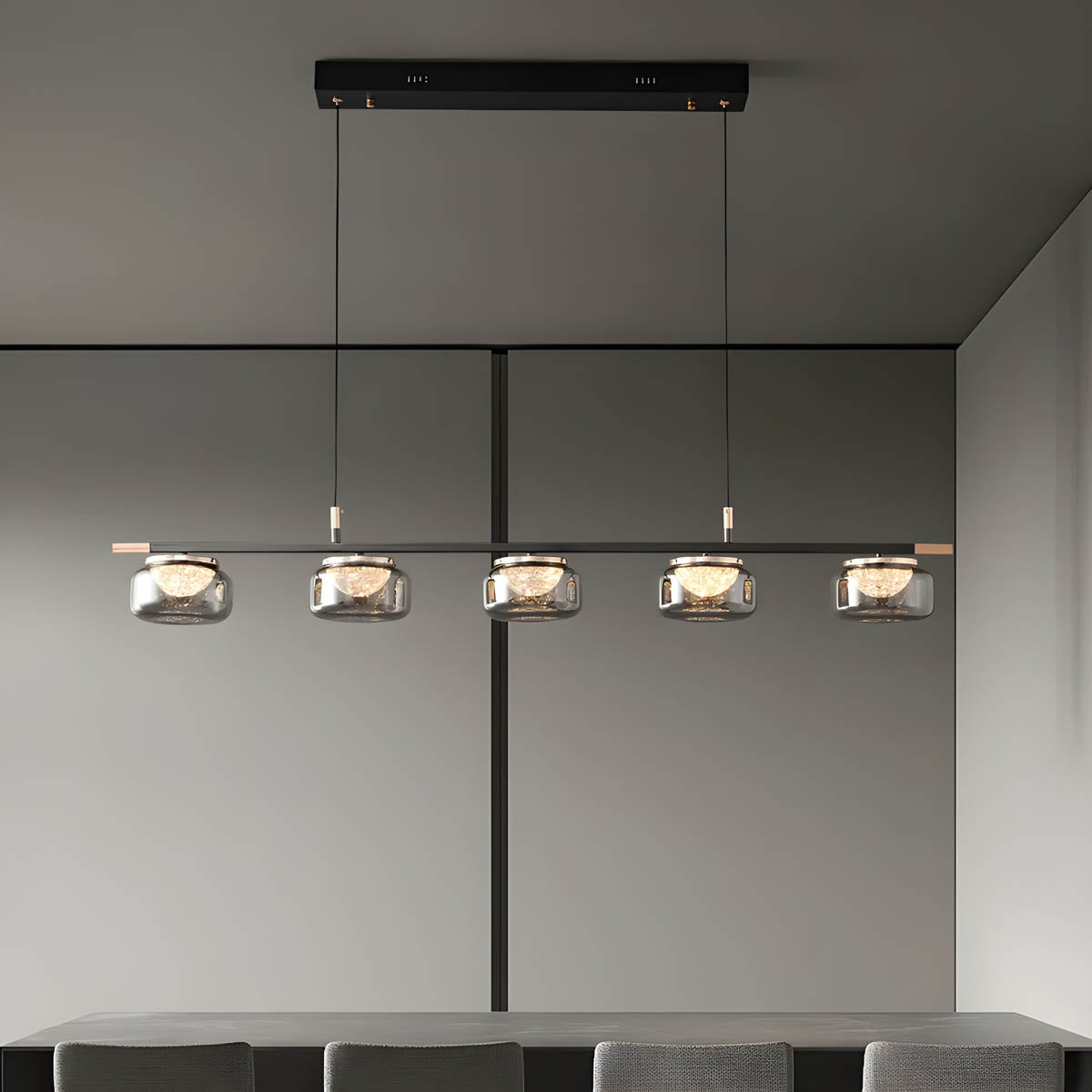 With adjustable cord pendant installation and dimmable LED bulbs included, customise your lighting experience effortlessly.