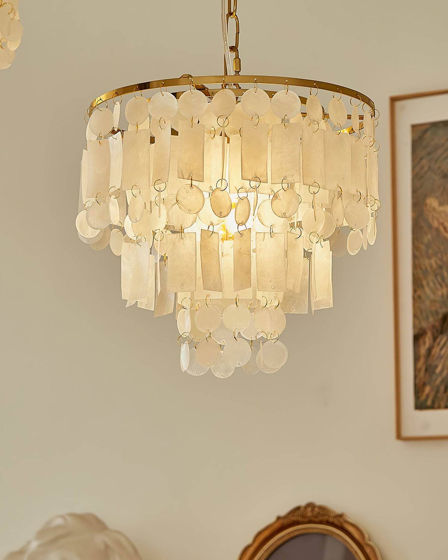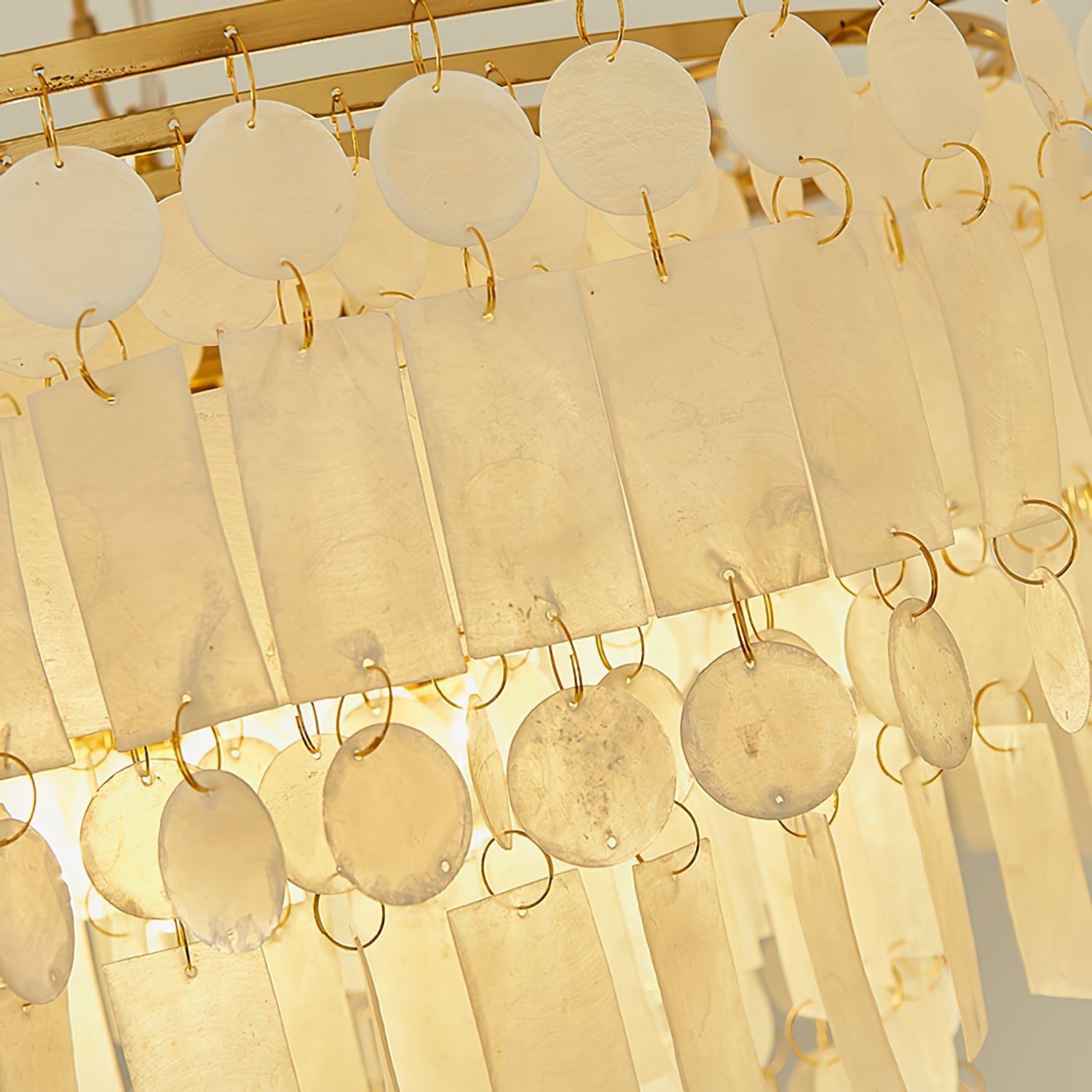 The Capiz Shell Chandelier by Dekorfine brings a touch of coastal elegance to your home. Crafted from delicate capiz shells and sturdy metal, this chandelier features a cascading shell shade that beautifully diffuses light, creating a warm, inviting glow. The intricate design and natural materials make it a stunning focal point in any room, adding a sense of refined luxury and organic charm to your decor. Perfect for dining rooms, living areas, or bedrooms, the Capiz Shell Chandelier enhances your space with its unique blend of sophistication and natural beauty.