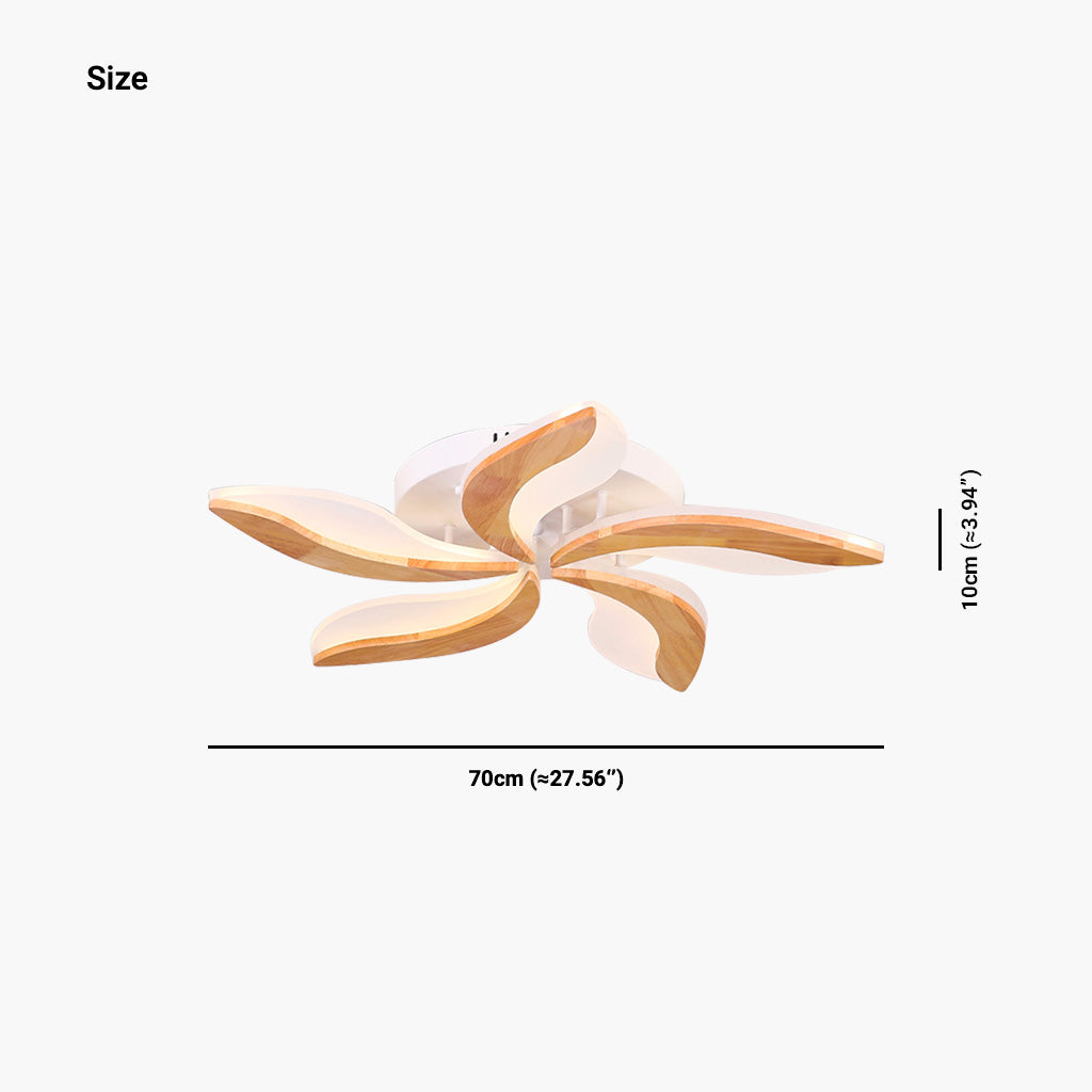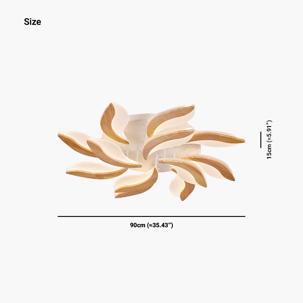 Ceiling Light Flower Petal Flush Mount, Wood & Acrylic