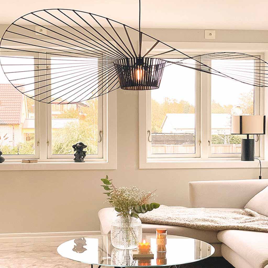 Features of Large Retro Straw Hat Chandelier Hanging Light include: > Inspired from cowboy hat, this chandelier has a unique style that it will add more interest to your living room, dining room, bedroom, etc. > Made of superior polyurethane elastics and fiberglass, which is anti-rust and anti-corrosion, ensuring a long service life. > The retro chandelier pendant light is an elegant decorative centerpiece for your space. > When the light is turned on, the lampshade can make a special shadow on the ceiling, which looks like the sun ray.