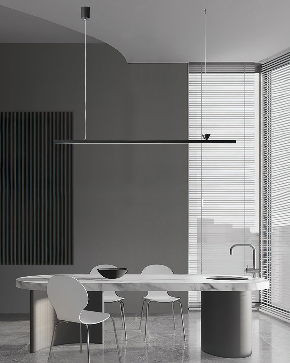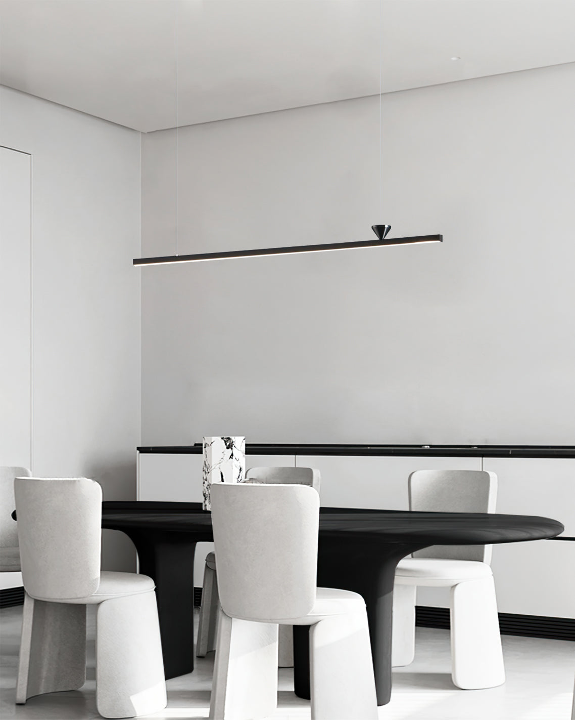 The Coln Chandelier adds a modern touch to any interior. Its sleek, linear design is enhanced by the black finish. Perfect for adding a sophisticated flair to any living space.