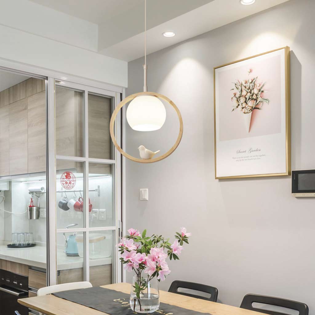 Ceiling Light Wood Pendant Light Creative Ring Bird
