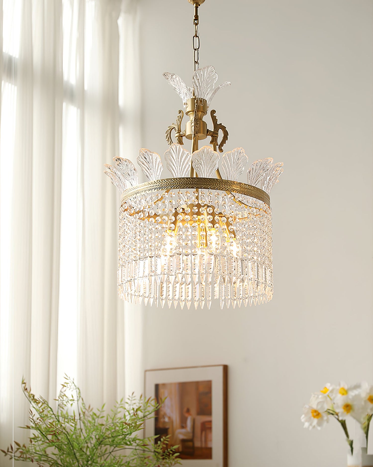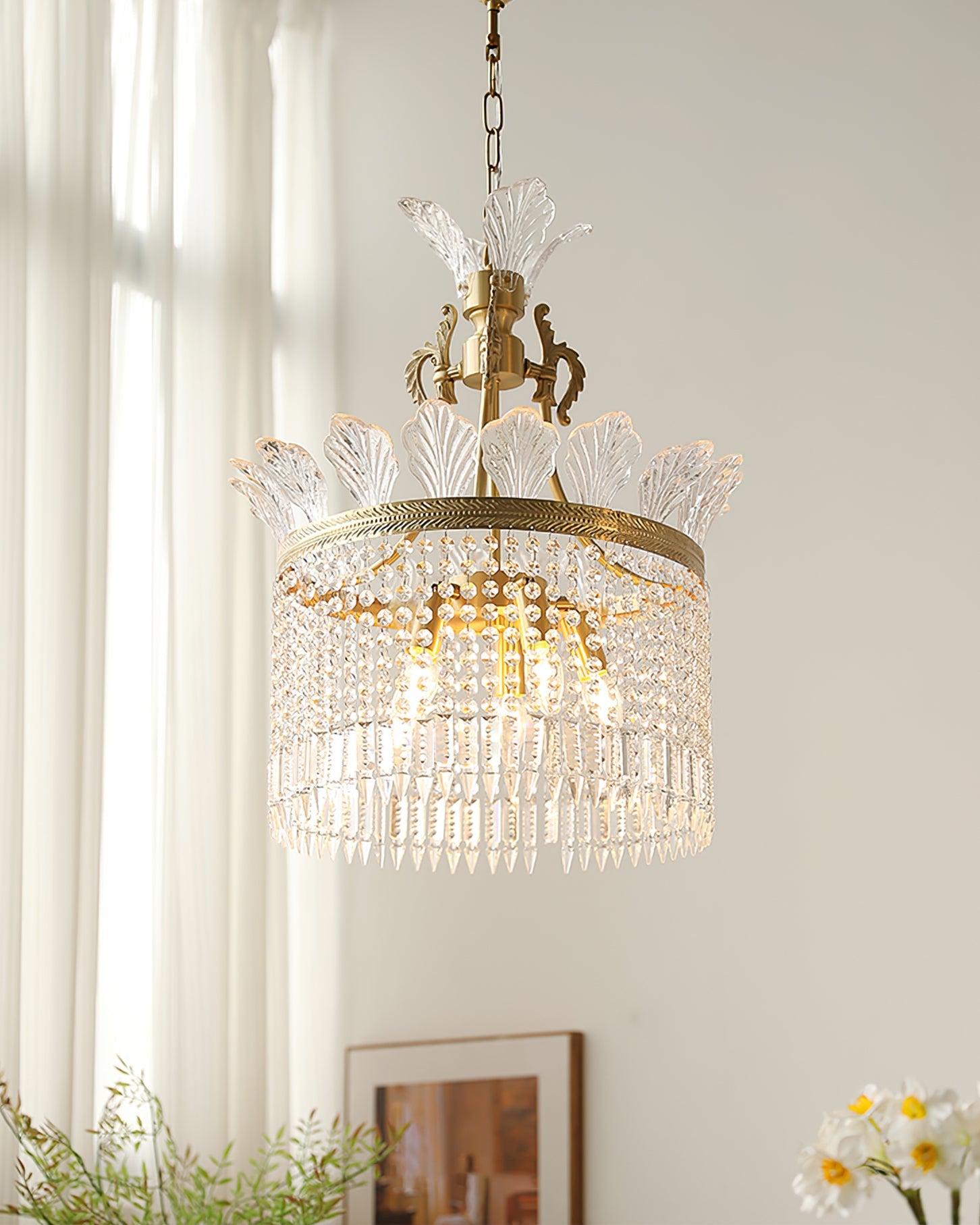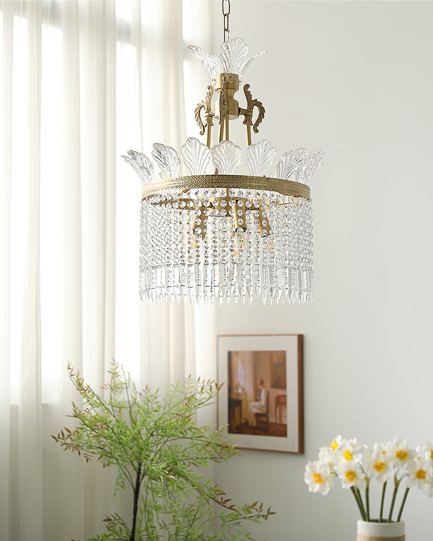The Crinoline Chandelier adds a striking sophistication to any interior décor, crafted from a combination of solid brass and crystal materials. This classic piece features a stunning shape that will provide superior illumination and elevate the ambience of any room.