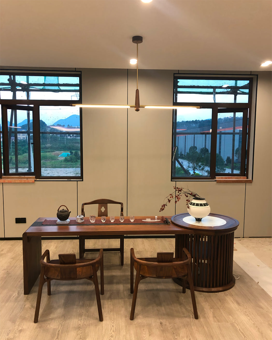 Our Dorian Chandelier draws on minimalist elements to create a modern, luxurious style. Crafted with copper and walnut, it features sleek, It will bring sophistication to any dining room.