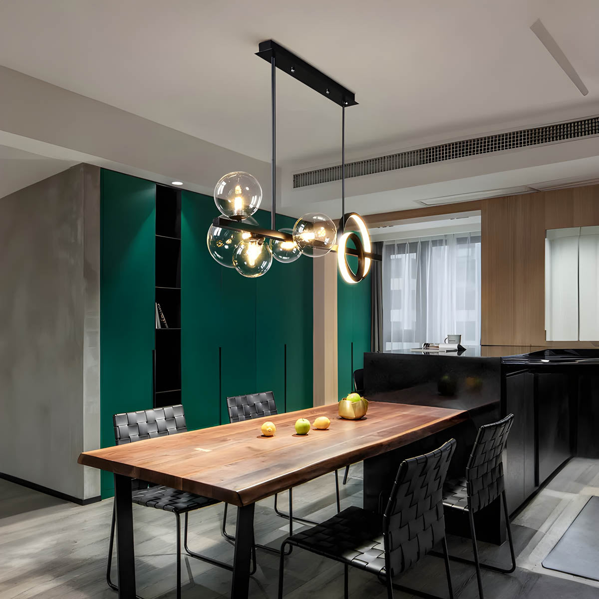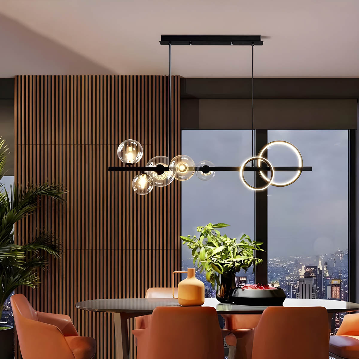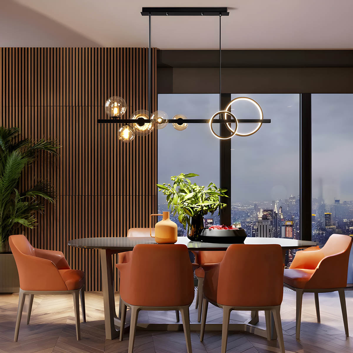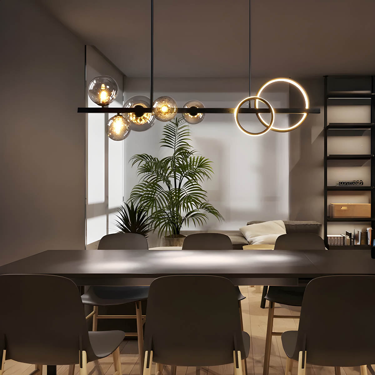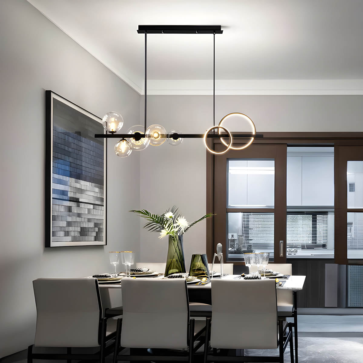 Crafted from a combination of iron, glass, and aluminum, this chandelier is built to last, ensuring its durability and longevity.