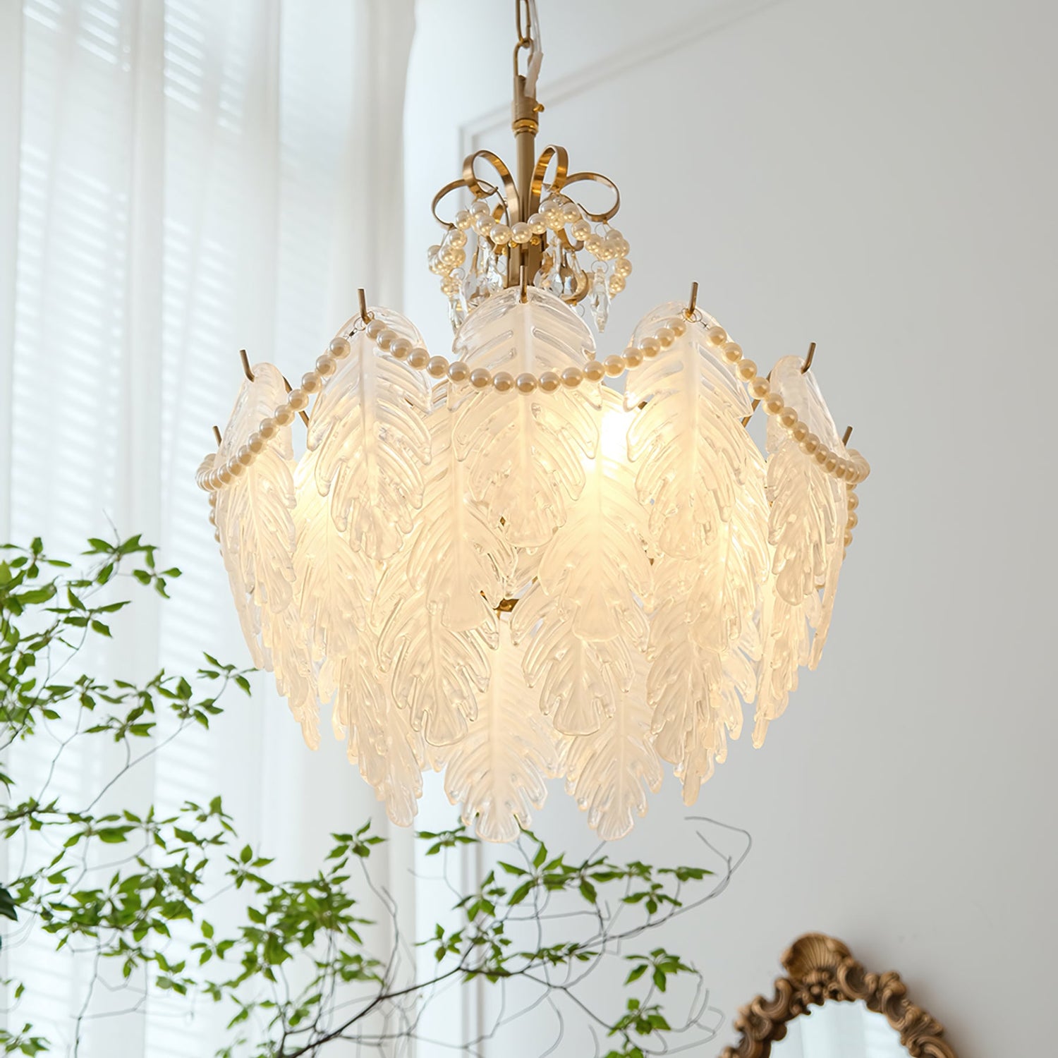 The Feather Glass Chandelier from dekorfine is a stunning blend of glass and brass, designed to elevate any room with its elegant presence. This chandelier features delicate glass elements shaped like feathers, creating a light and airy aesthetic. The brass framework adds a touch of classic sophistication, providing a strong and stylish support for the intricate glass feathers. Perfect for adding a luxurious focal point to your space, the Feather Glass Chandelier combines exquisite craftsmanship with timeless design to create a captivating lighting solution.