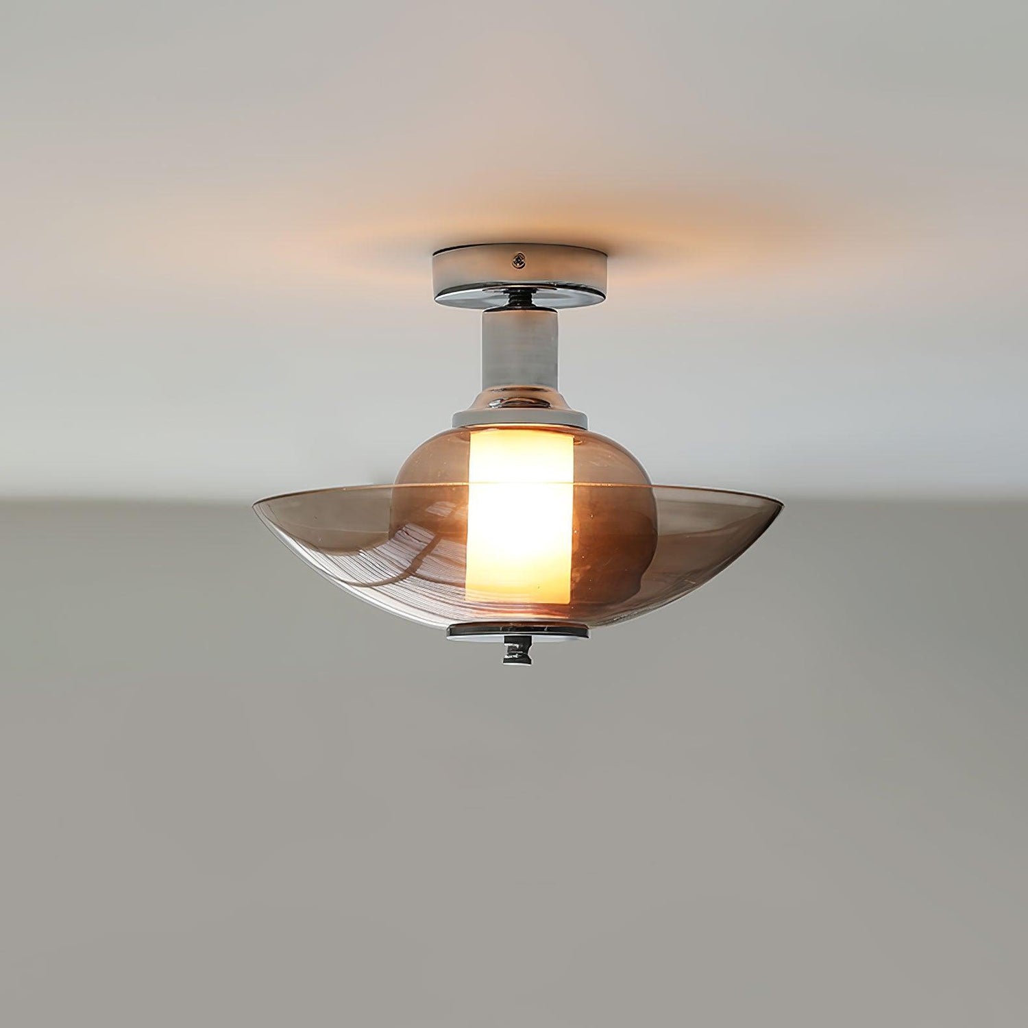 The amber glass diffuses the light into a warm, inviting hue, casting a cozy glow over your living space. This playful yet sophisticated pendant lamp serves as an eye-catching centerpiece that can effortlessly elevate the aesthetic of any room, from a stylish living area to a welcoming entryway. Whether it's switched on to brighten up your evenings or serving as a sculptural piece by day, the Flying Saucer Chrome Wall Light is a dazzling blend of retro charm and modern-day chic.