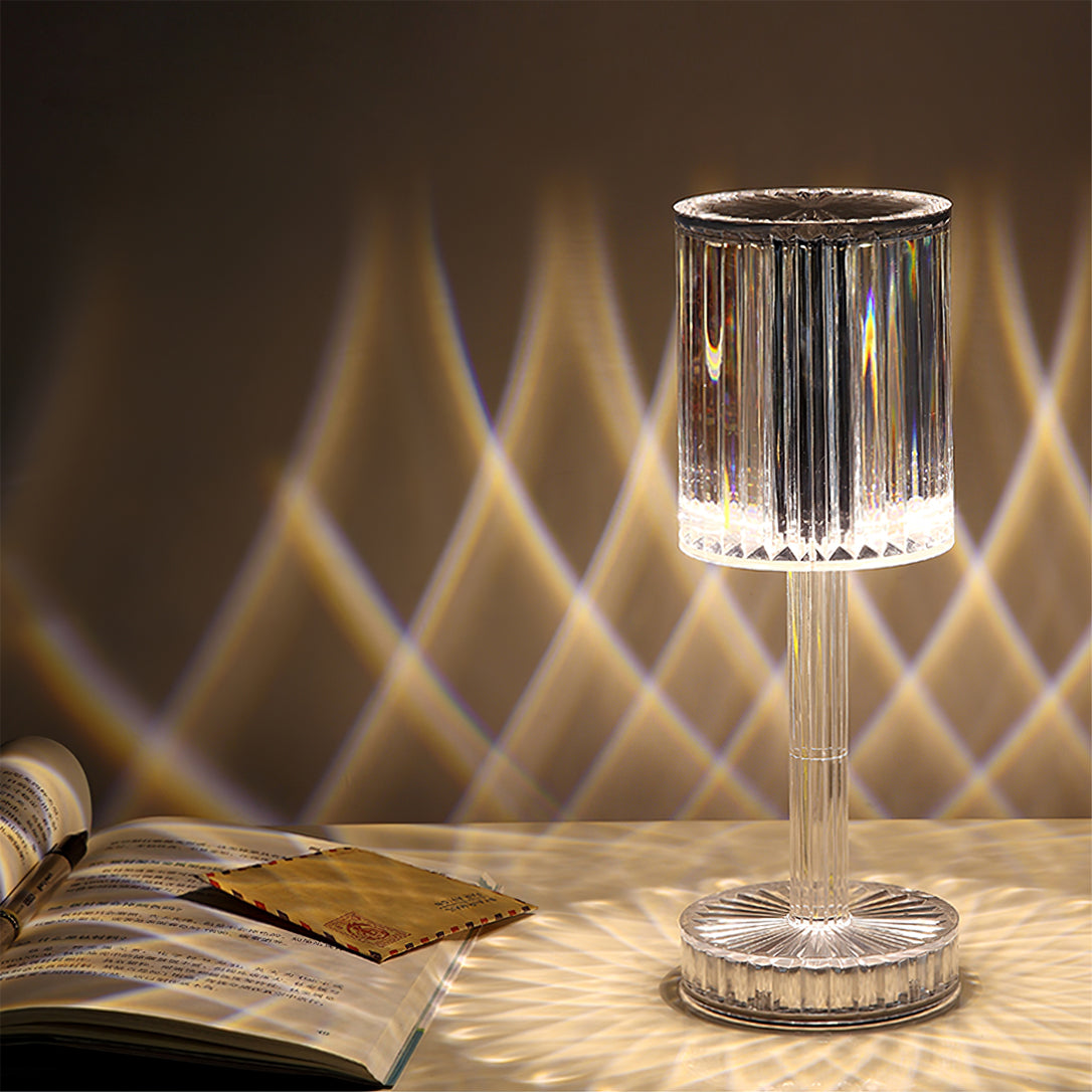 This elegant LED table lamp will bring creative lighting to your home or special occasions. Featuring a cylinder shape and crystal-like design with a classy light appearance, this acrylic desk lamp will jazz up any room or space. Display this versatile lamp as a dining table centerpiece, place on your living room coffee or end table, study room desk, bedroom nightstand or anywhere you like to create a romantic touch of light. The possibilities are endless!