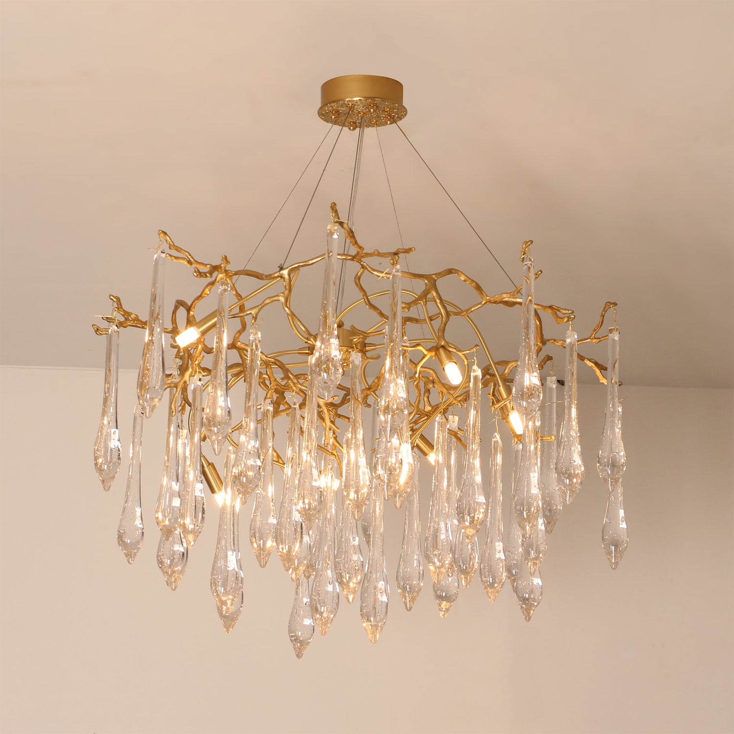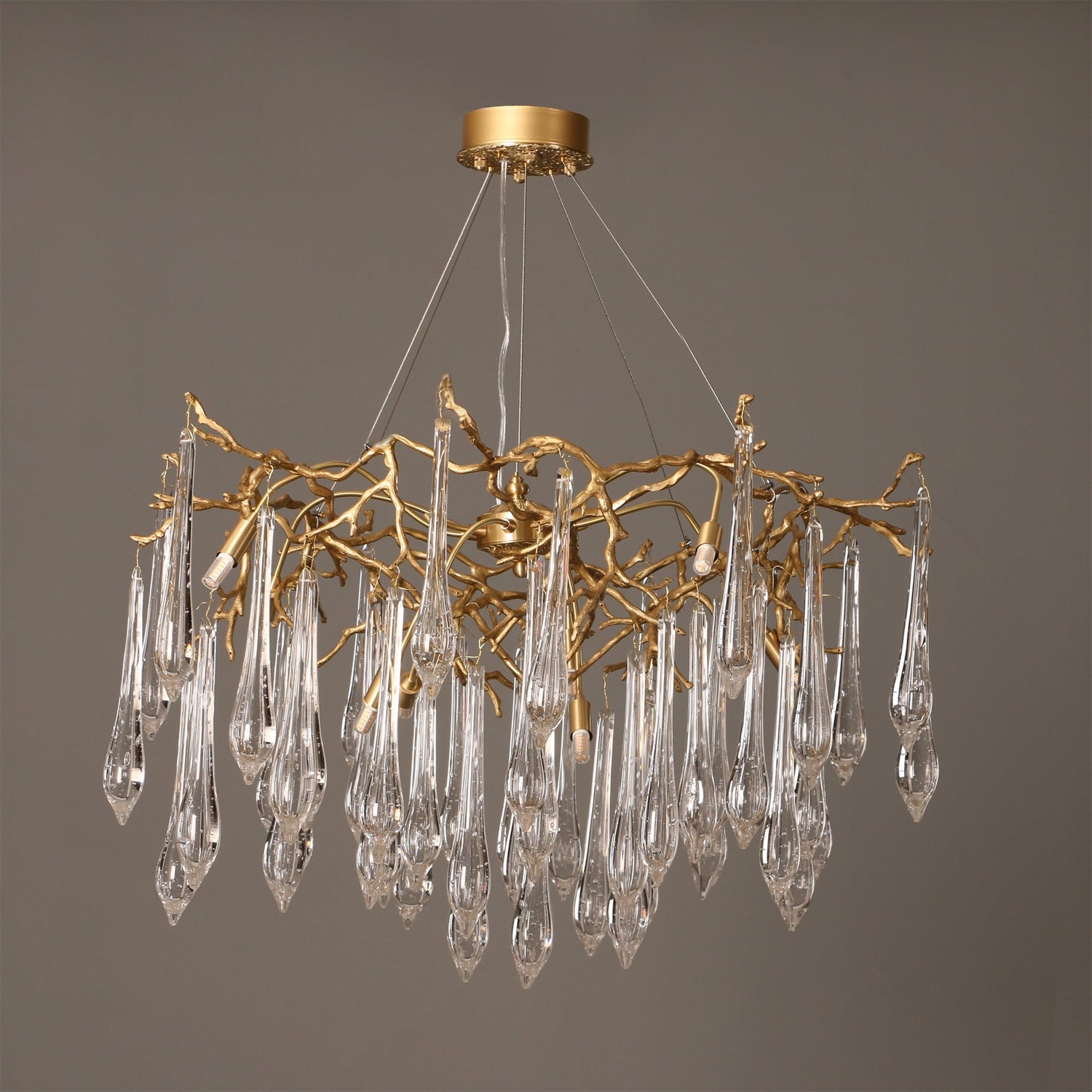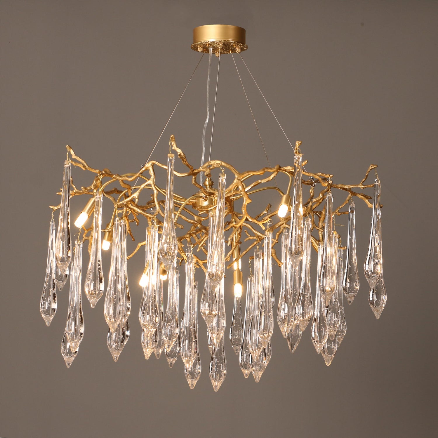 Elevate your living space with the Gieslinde Branches Chandelier, where nature-inspired elegance meets modern luxury. Crafted from premium brass, this chandelier features an intricate design of branching arms, each adorned with exquisite crystal accents that shimmer with every flicker of light. The Gieslinde brings a touch of refined opulence to any room, casting a warm and inviting glow that enhances the ambiance of your space. Perfect for those who appreciate subtle luxury, this chandelier is a statement piece that combines artistry with sophistication, making it the centerpiece of any contemporary or classic interior.