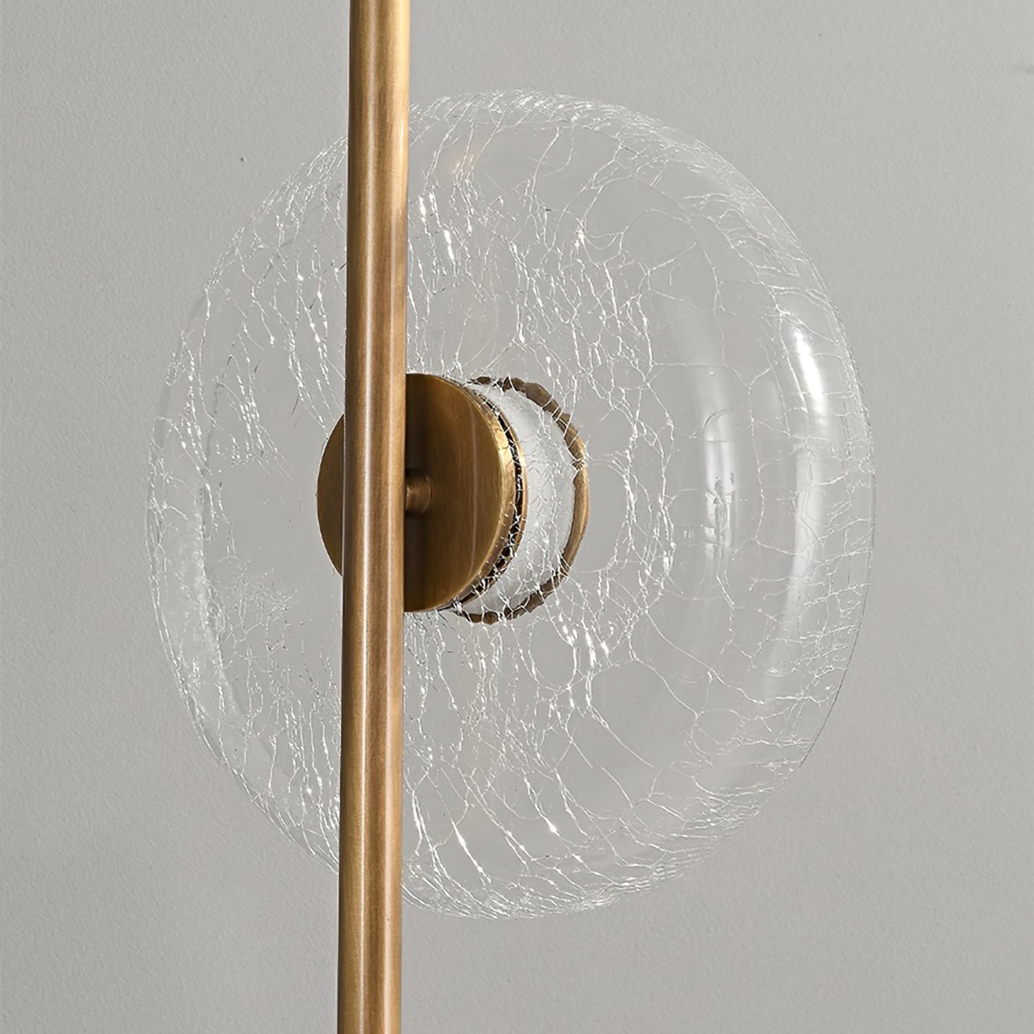 The Glacier Crackle Glass Floor Lamp is a stunning blend of modern elegance and artistic craftsmanship. Featuring a bronze-finished base that adds a warm, sophisticated touch, this lamp is designed to stand out in any room. The lamp's highlight is its unique crackle glass discs that elegantly disperse light, creating a mesmerizing play of shadows and illumination. Whether placed in a living room, bedroom, or office, this floor lamp from Dekorfine is sure to elevate your space with its luxurious design and captivating light effects.
