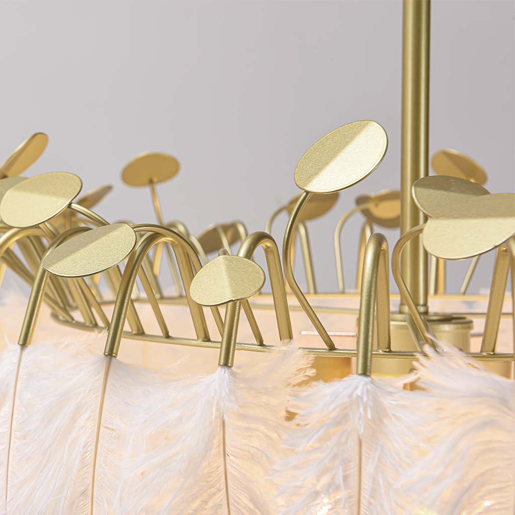 Feather Chandelier Ceiling Light Glamorous Wire Frame, White & Gold