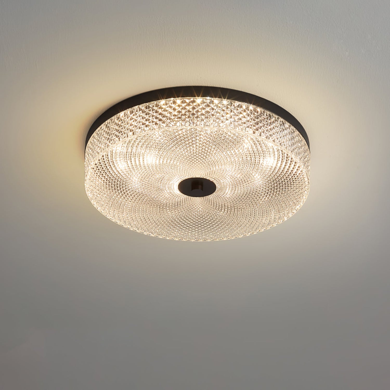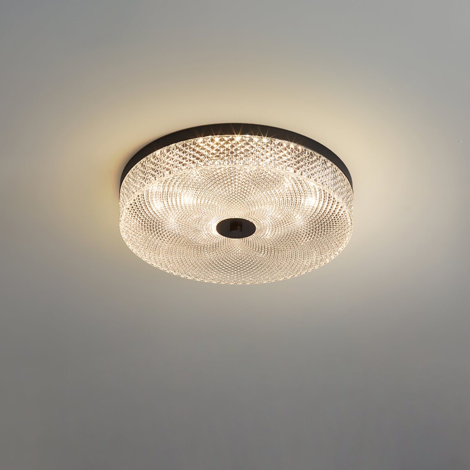The Glimmering Striped Ceiling Light is inspired by the enchanting interplay of light and texture found in nature. The glass shade features a finely striped pattern that captures and diffuses light beautifully, creating a shimmering, ambient glow. The elegant gold trim adds a touch of modern luxury, making it an ideal choice for living rooms, bedrooms, or hallways. The Glimmering Striped Ceiling Light effortlessly blends sophisticated design with functional elegance, enhancing any space with its captivating presence.