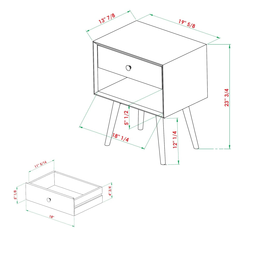 Introducing the Hallvard Mid Century Modern Nightstand, a stunning blend of vintage charm and practical storage for your bedroom. This walnut solid wood nightstand combines timeless design with the convenience of a small bedside table, making it a perfect addition to your space.