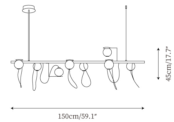 Suspension rod length 50cm/19.7″. The length of the suspension rod can be varied upon request.