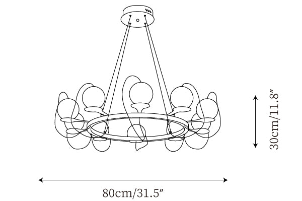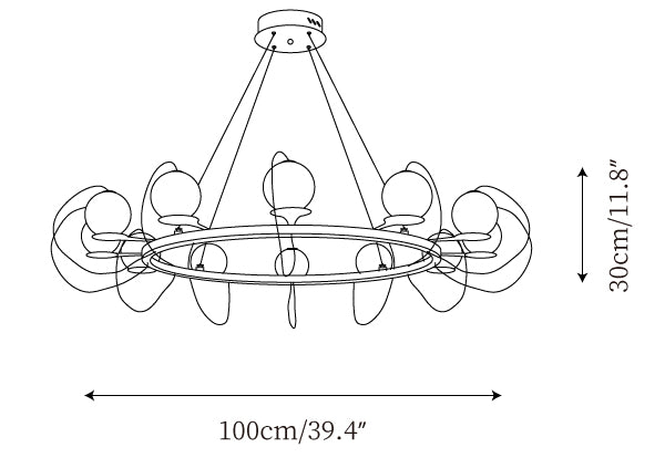 12 Heads Size: Dia 100cm x H 30cm / ∅ 39.4″ x H 11.8″ (power~60W)