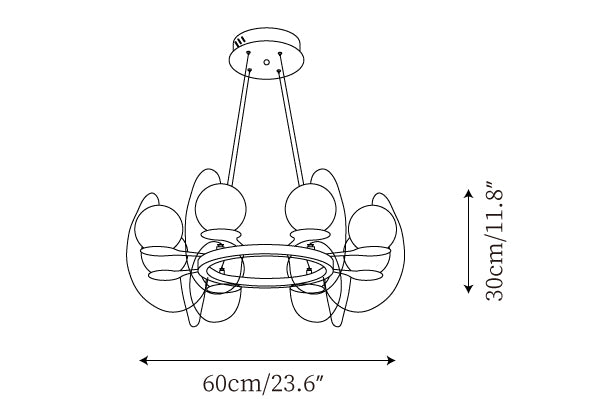 8 Heads Size: Dia 60cm x H 30cm / ∅ 23.6″ x H 11.8″ (power~40W)