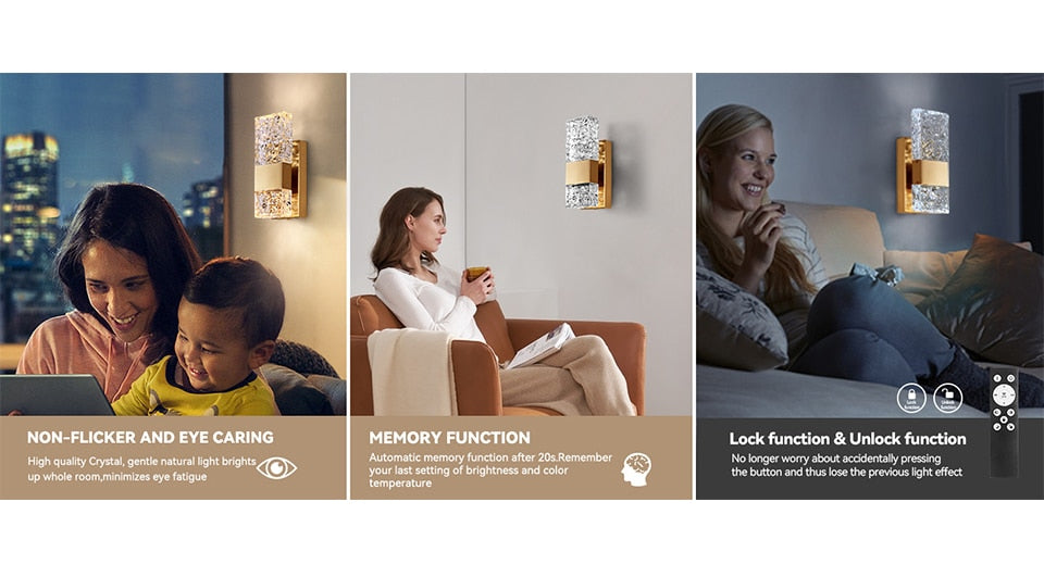 IIS Modern Crystal Lighting with Remote for Bedroom Living Room Hallway Bathroom Vanity