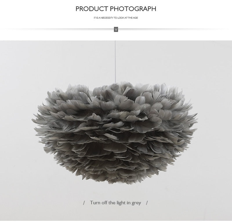 Feather lampshade, metal construction. A simple, classy design that’s fit for any indoor environment, from the office to the bedroom. Consistent with the safety standards of E27 light bulbs, standard E27 lamp holder, easy installation, energy-saving, and environmental protection.