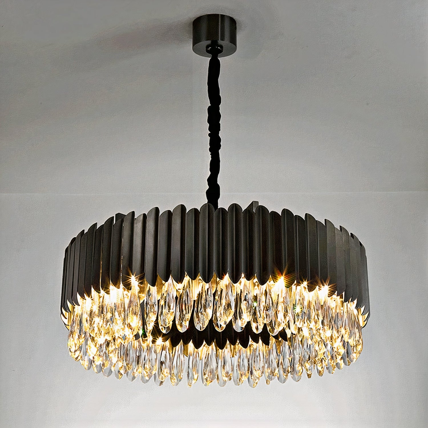 IND Modern Luxury Crystal Round Gold Black Chandelier Light