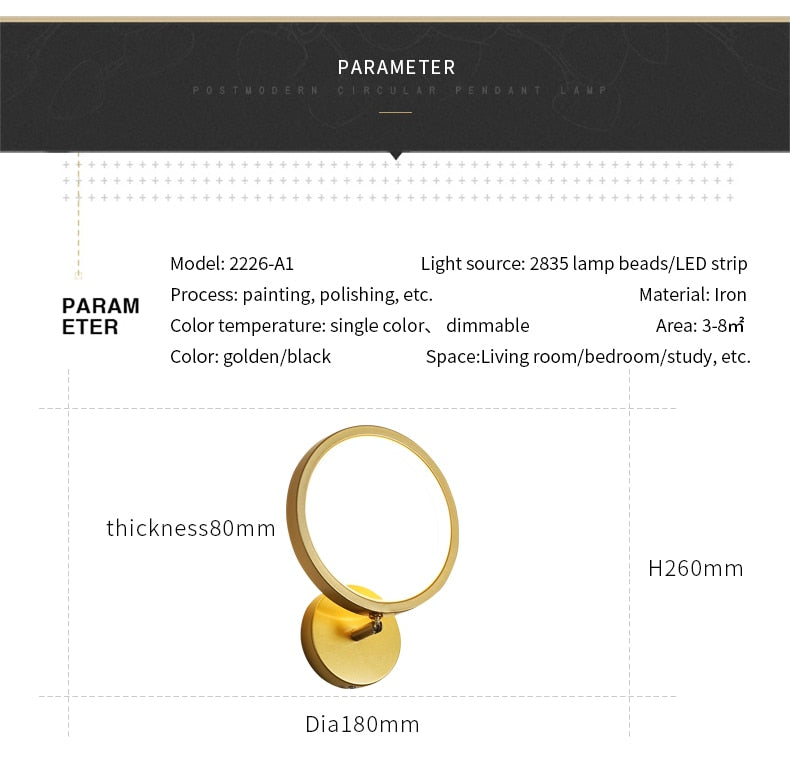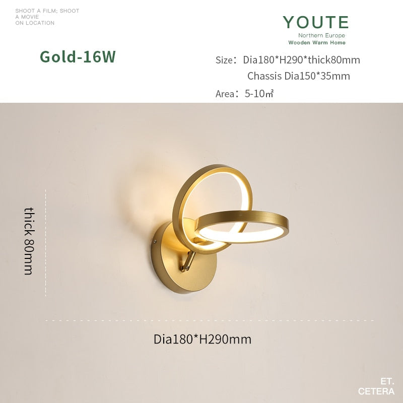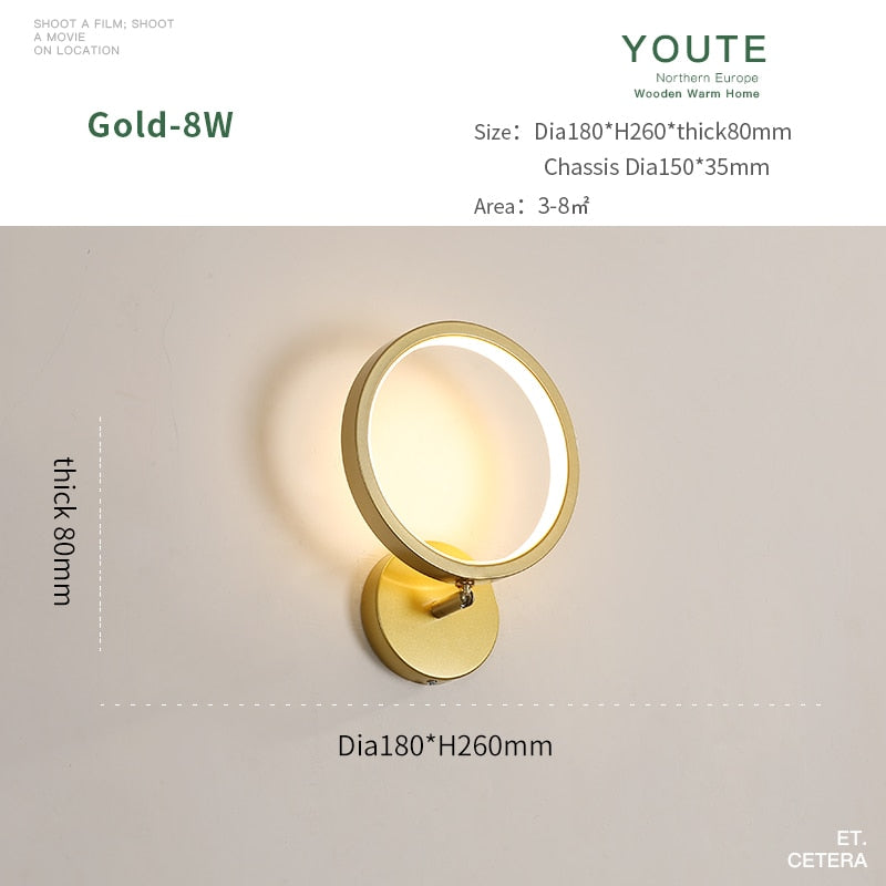 JM Nordic Wall Lamp Indoor Copper LED Bedside Light Decorative