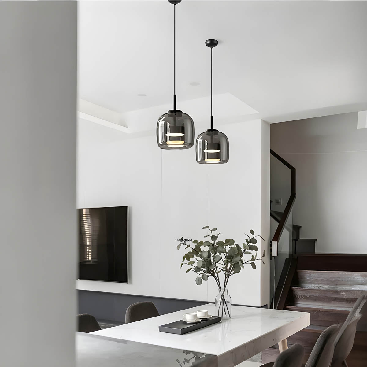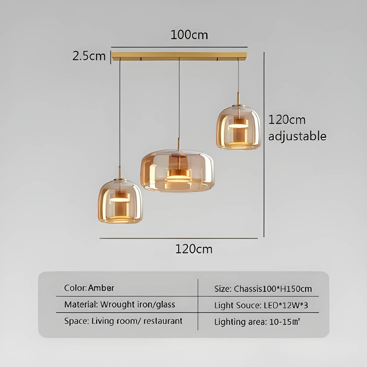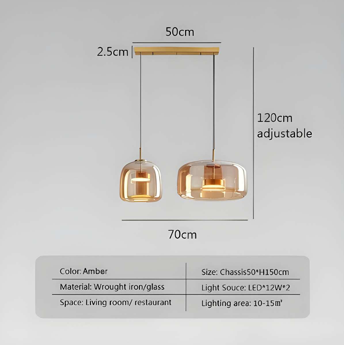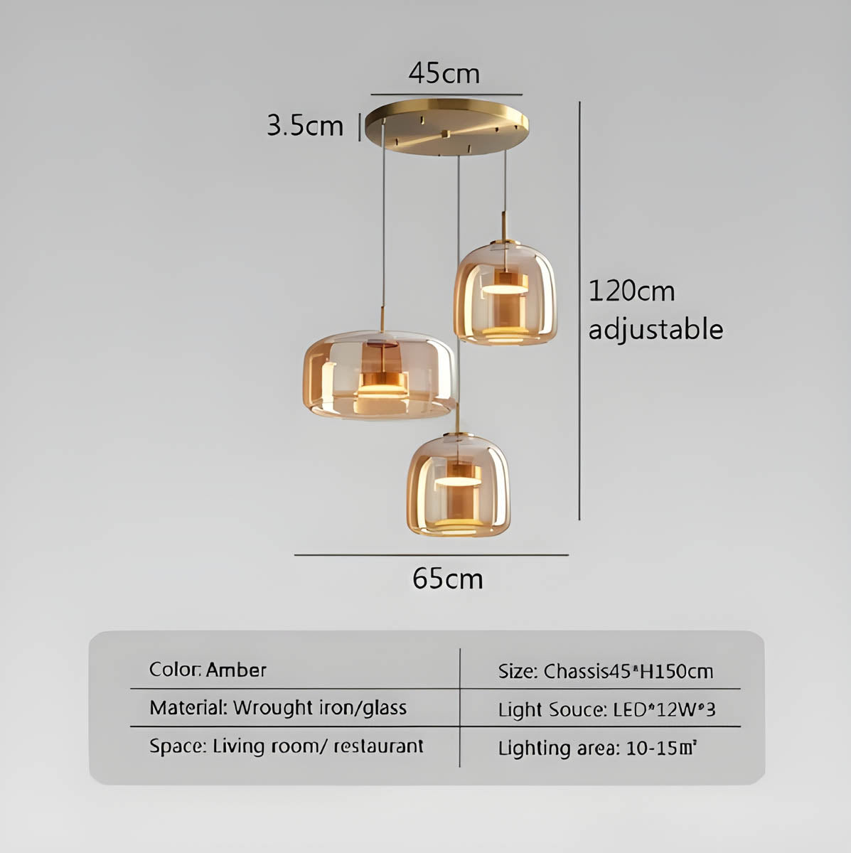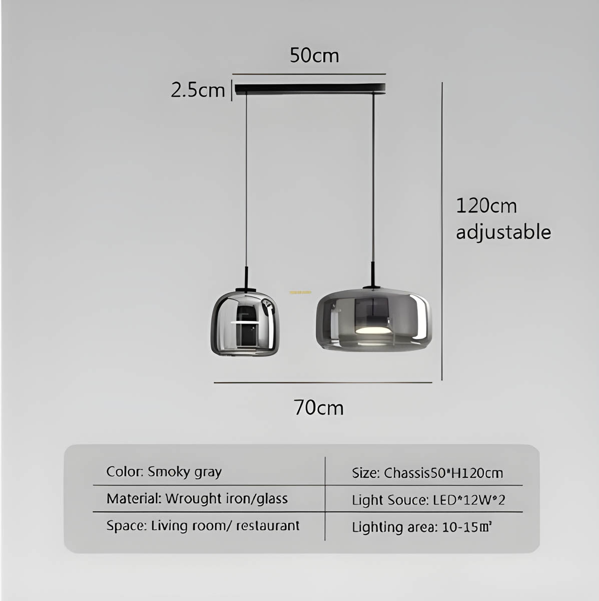 Introducing KAIRA - the perfect blend of elegance and functionality. This exquisite glass pendant lamp is crafted from sturdy iron, ensuring durability and style.