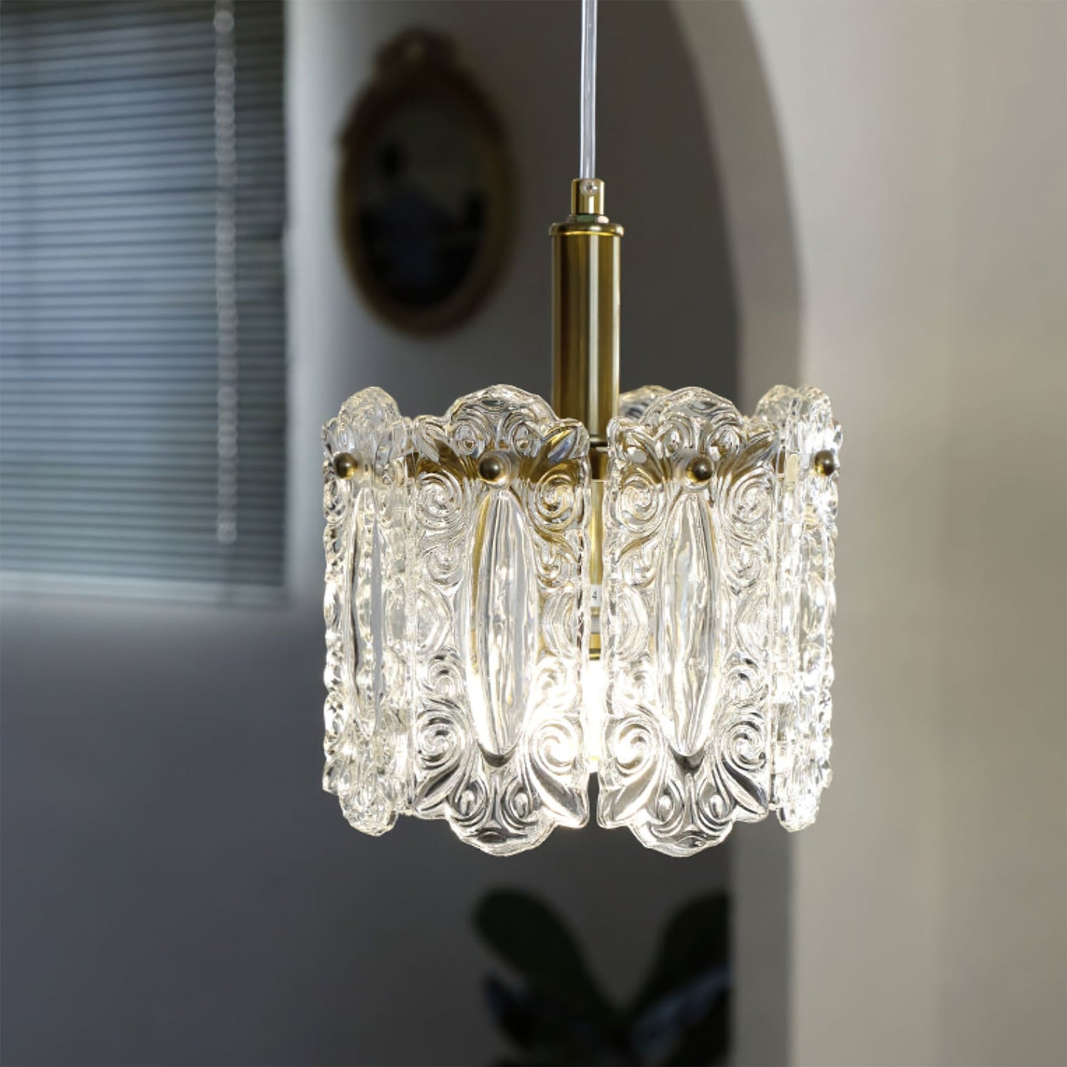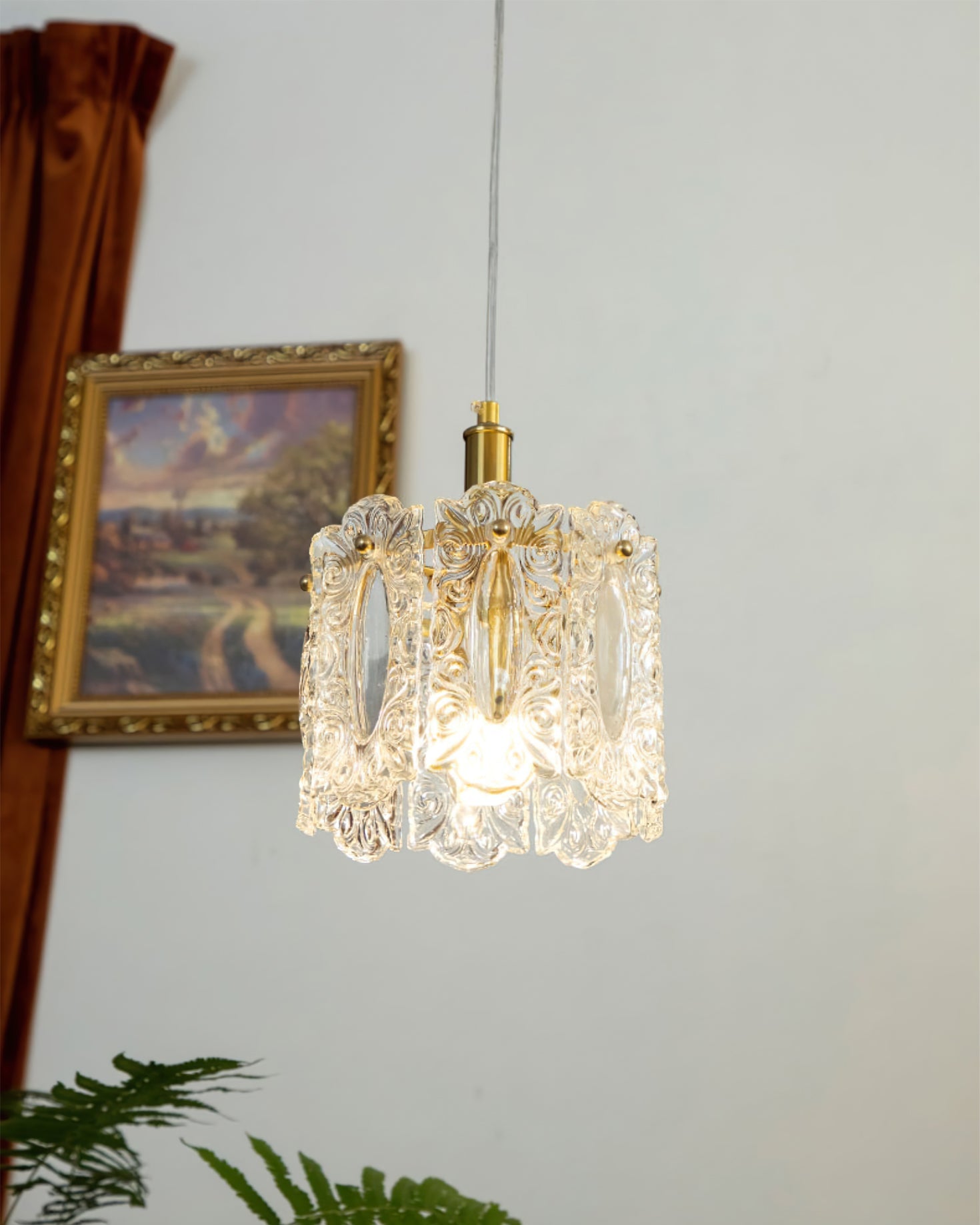 The Kalmar Pendant Lamp by dekorfine combines elegance and craftsmanship to create a stunning focal point for any room. Featuring an exquisite design with intricately detailed glass panels and a refined brass finish, this pendant lamp exudes sophistication and charm. The beautifully glass softly diffuses the light, casting a warm, inviting glow that enhances the ambiance of any space. Perfect for dining rooms, living areas, or bedrooms, the Kalmar Pendant Lamp seamlessly blends classic aesthetics with modern functionality. Illuminate your home with the timeless beauty of this exquisite piece from dekorfine.