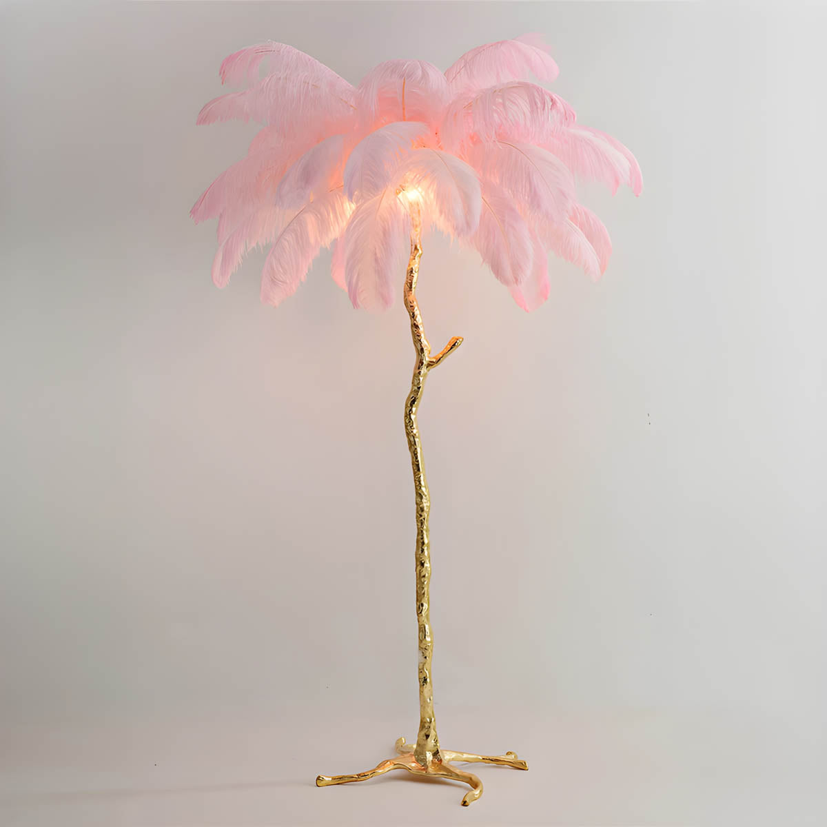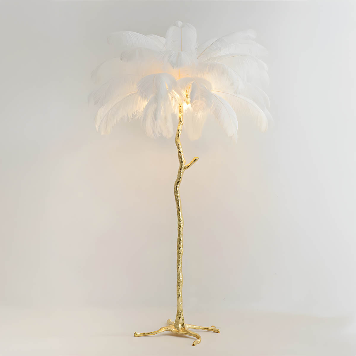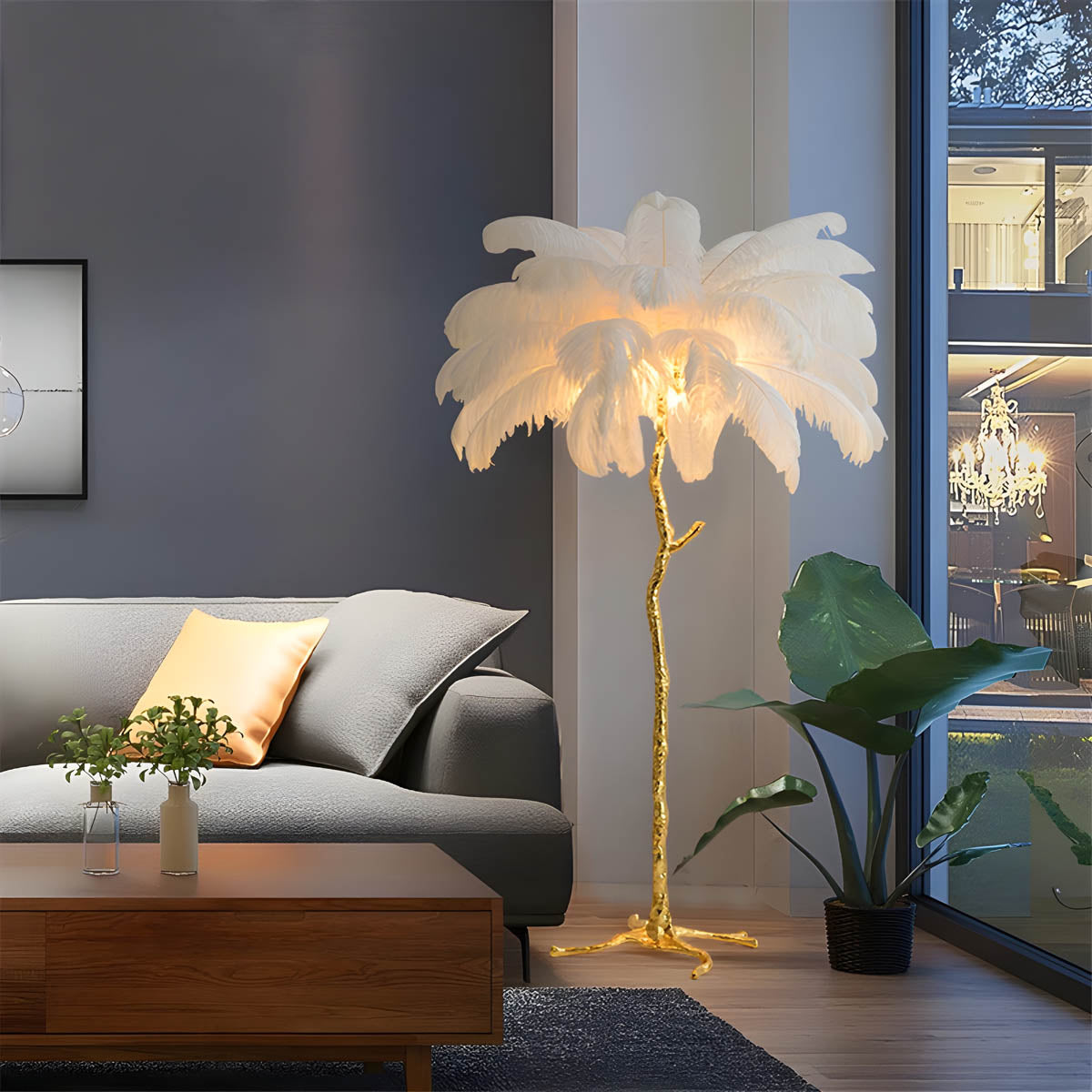Illuminate your space with a touch of luxury and modern elegance. Our floor lamp features a stunning arrangement of real ostrich feathers, creating a soft, delicate texture that enhances any room's visual appeal. The feathers' transparent quality allows for a subtle, enchanting glow, while their gentle touch adds a refined softness to the atmosphere.