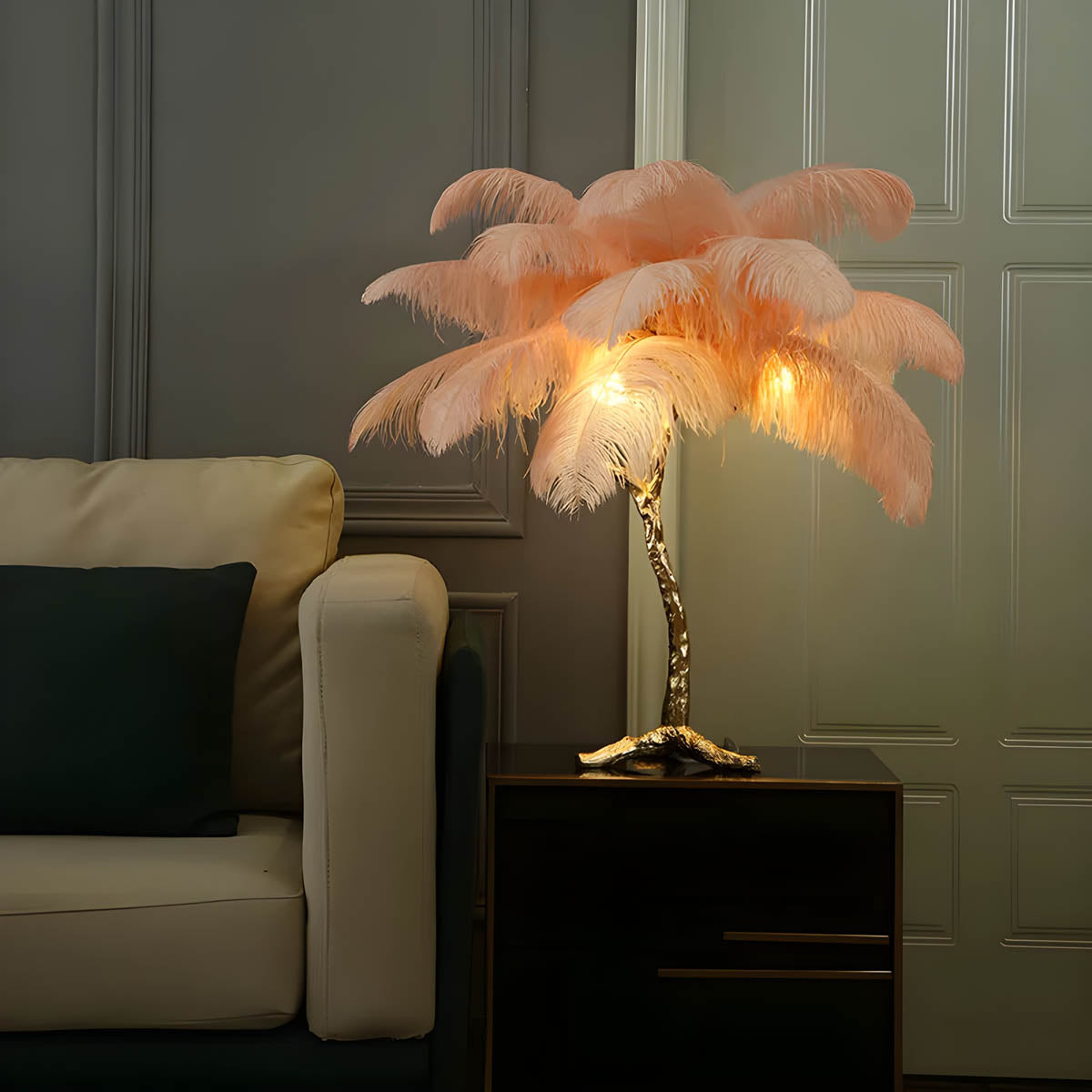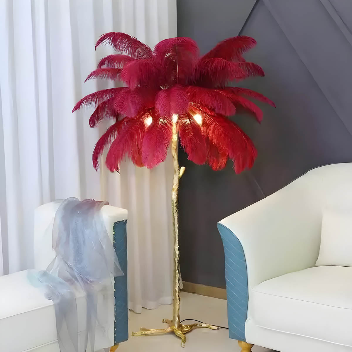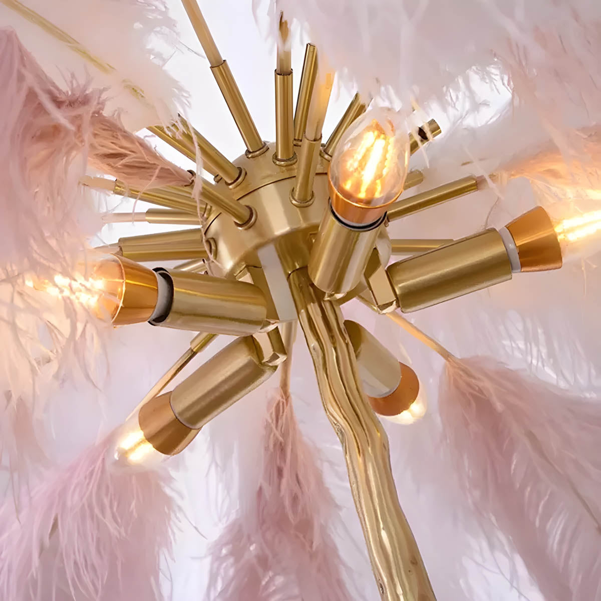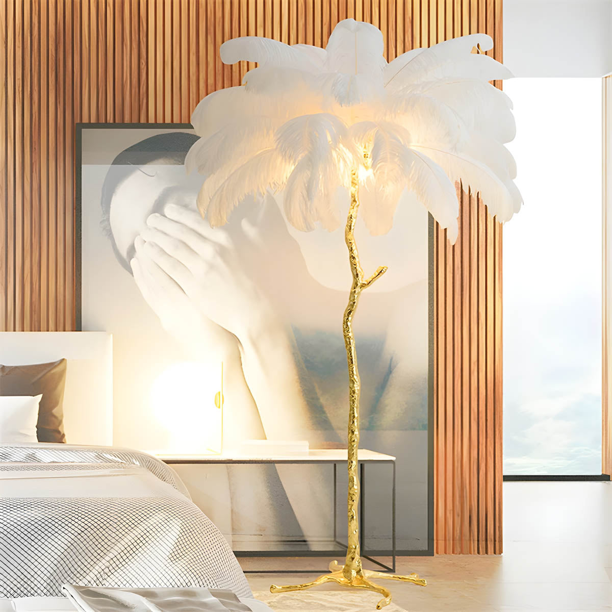 Illuminate your space with a touch of luxury and modern elegance. Our floor lamp features a stunning arrangement of real ostrich feathers, creating a soft, delicate texture that enhances any room's visual appeal. The feathers' transparent quality allows for a subtle, enchanting glow, while their gentle touch adds a refined softness to the atmosphere.