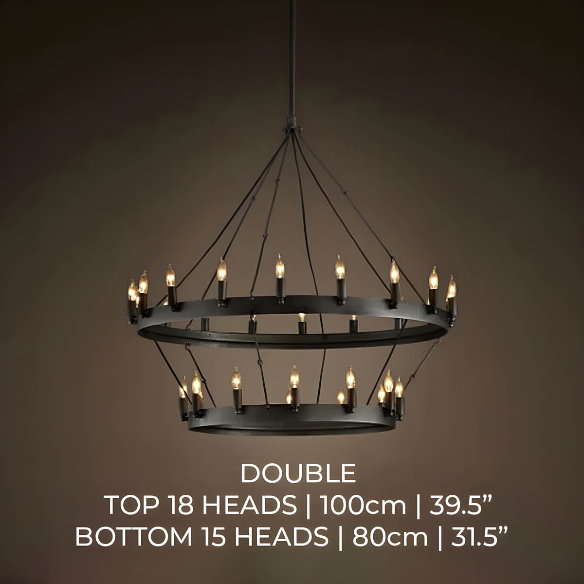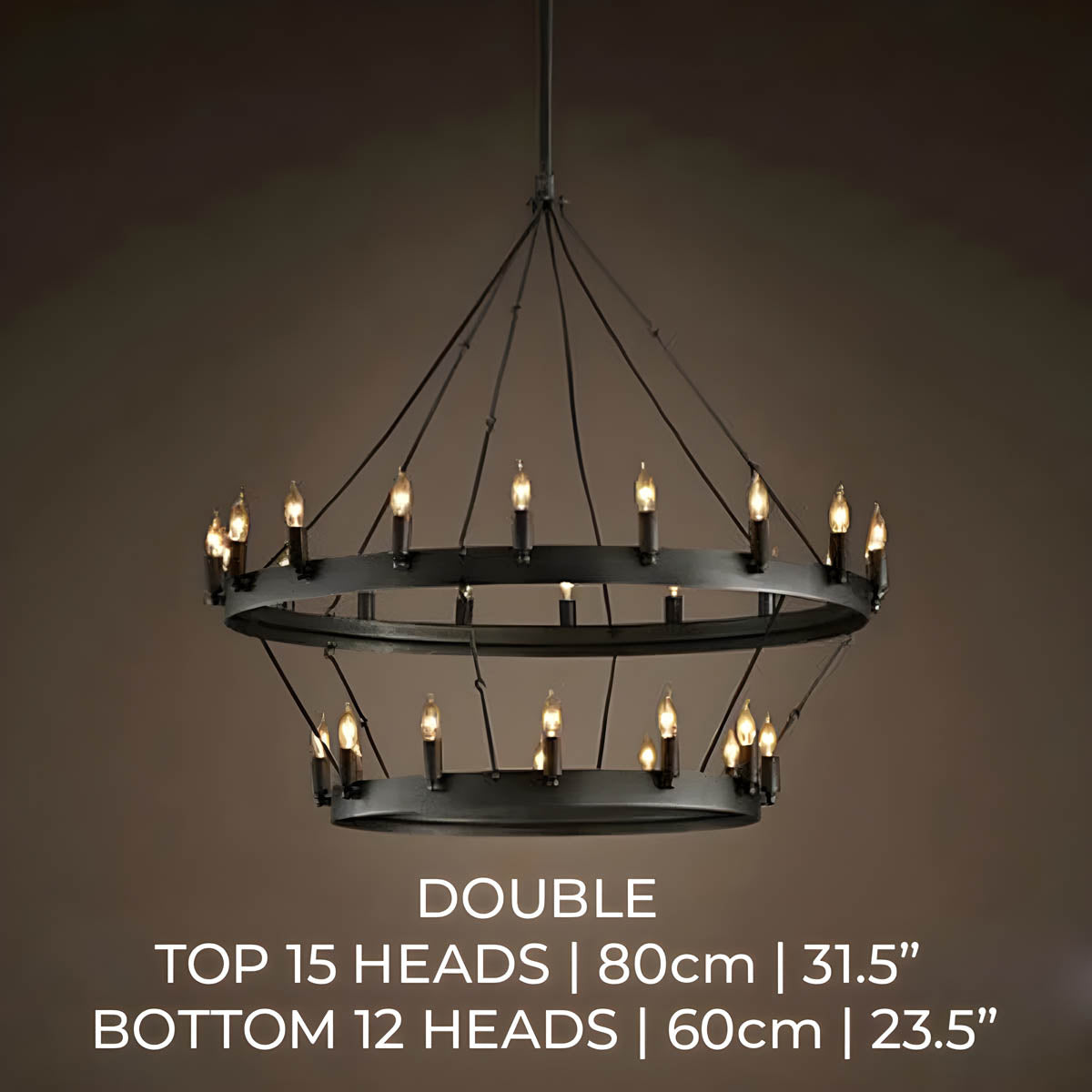 Medieval inspired chandelier thatbrings you back to a bygone era with its timeless design.