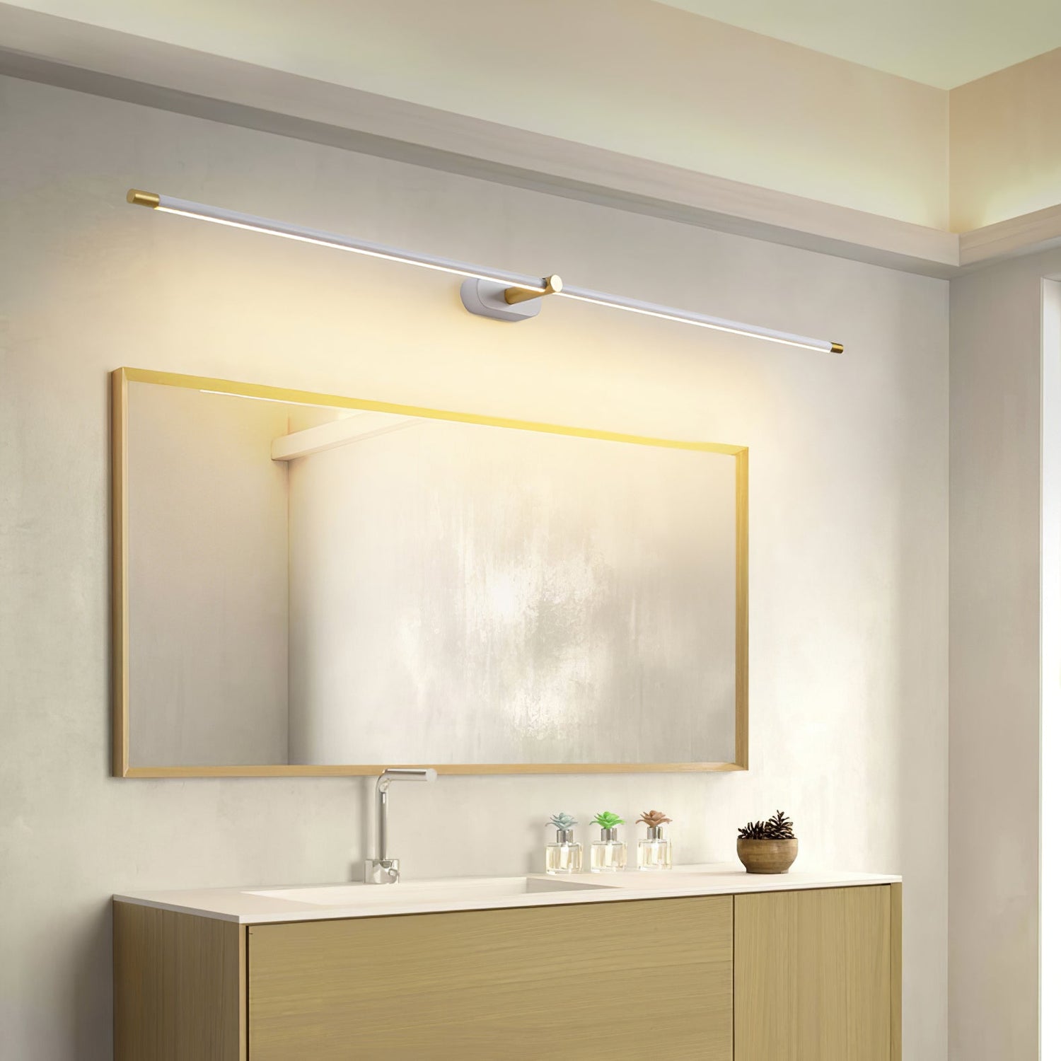 Enhance your bathroom with our Minimalist Linear Wall Lamp. Its sleek design, integrated LED light, and warm color temperature create an attractive option for any bathroom style. Enjoy the perfect combination of style and functionality, resulting in a serene and well-lit atmosphere. With its top-notch metal construction and energy-saving LED technology, this wall lamp is guaranteed to elevate your daily routine and improve the overall look of your bathroom.