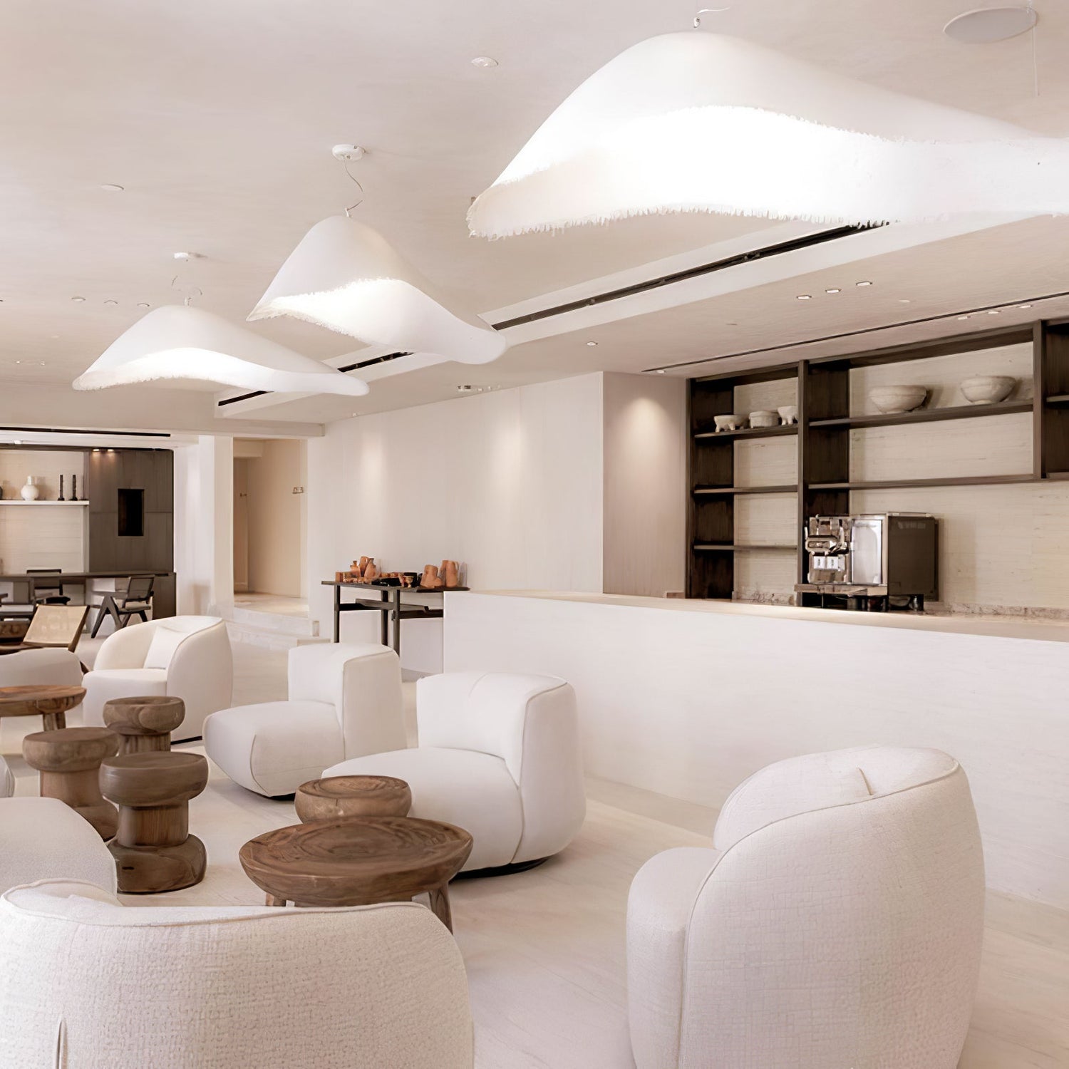 Illuminate your living space with the ethereal beauty of the Moby Dick Pendant Light Fixture. Inspired by the enchanting depths of Nordic literature and the majesty of the ocean, this piece transcends mere lighting to become an artistic statement. The fluid silhouette mimics the gentle curves of a wave, crafted with a sophisticated glass fiber finish that softens the glow of light, inviting warmth and tranquility into any room. Allow your home to bask in a soft, ambient luminosity that transforms everyday moments into serene experiences.
