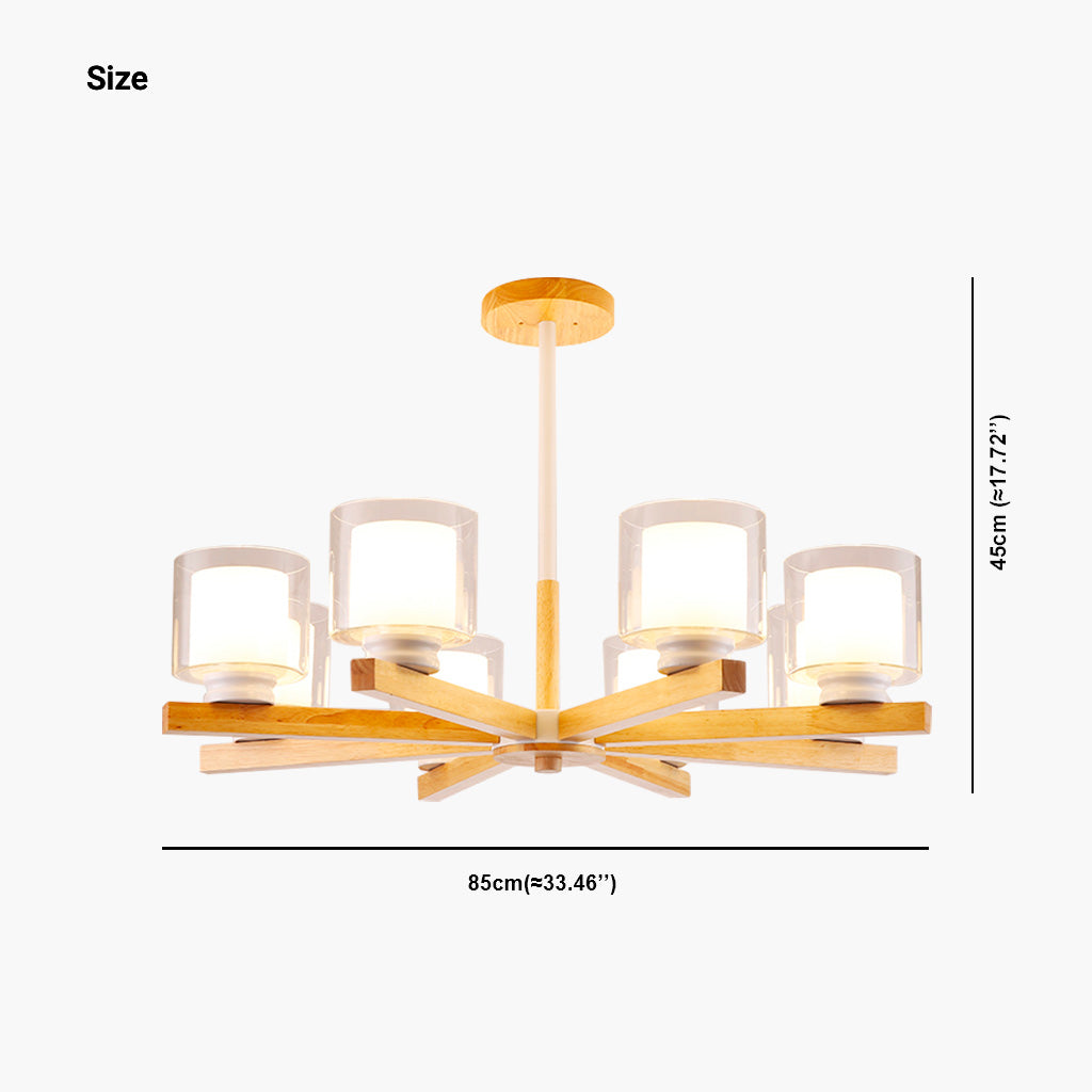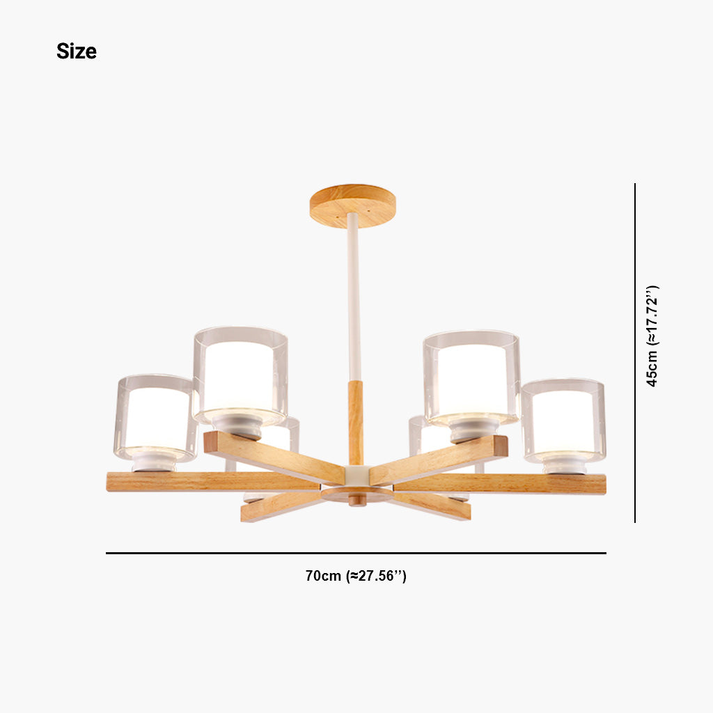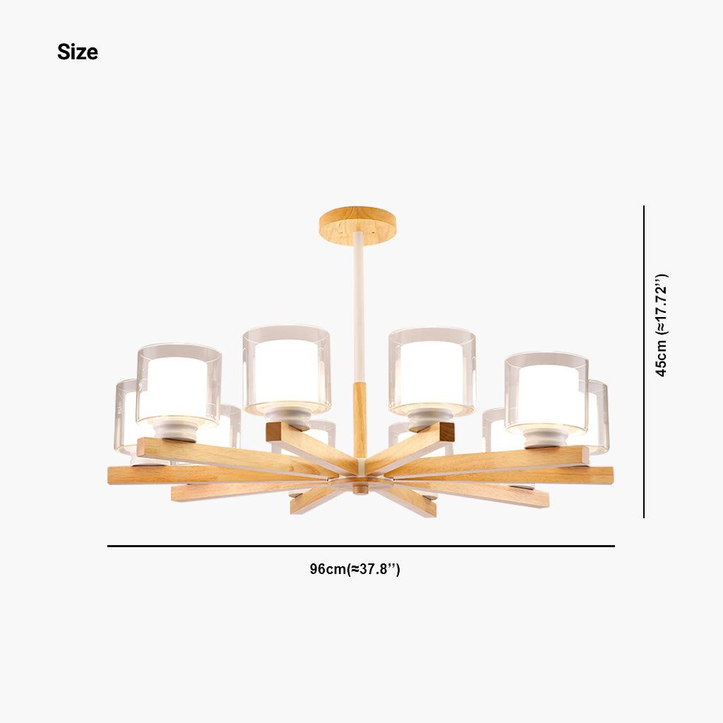 Chandelier Ceiling Light Modern Wood Glass Cylinder, Black/White