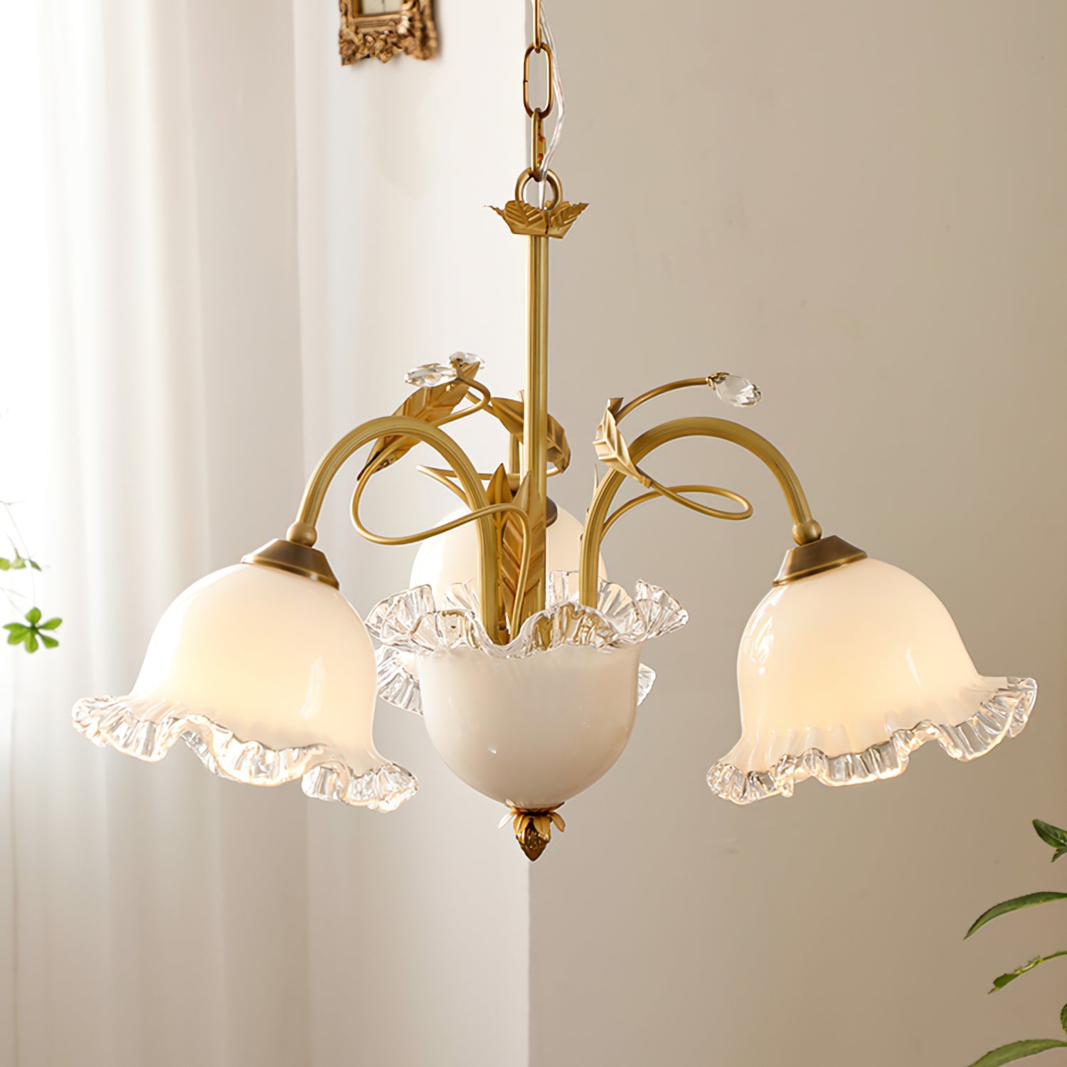 The Muse Flower Chandelier from Dekorfine is a stunning blend of artistry and elegance. Crafted from brass and glass, this chandelier features exquisite flower-shaped glass lampshades that beautifully complement its leaf-inspired brass body. The intricate design brings a touch of nature indoors, creating a warm and inviting atmosphere. Perfect for adding a touch of luxury to any room, the Muse Flower Chandelier is both a functional lighting solution and a work of art, enhancing your decor with its sophisticated charm.