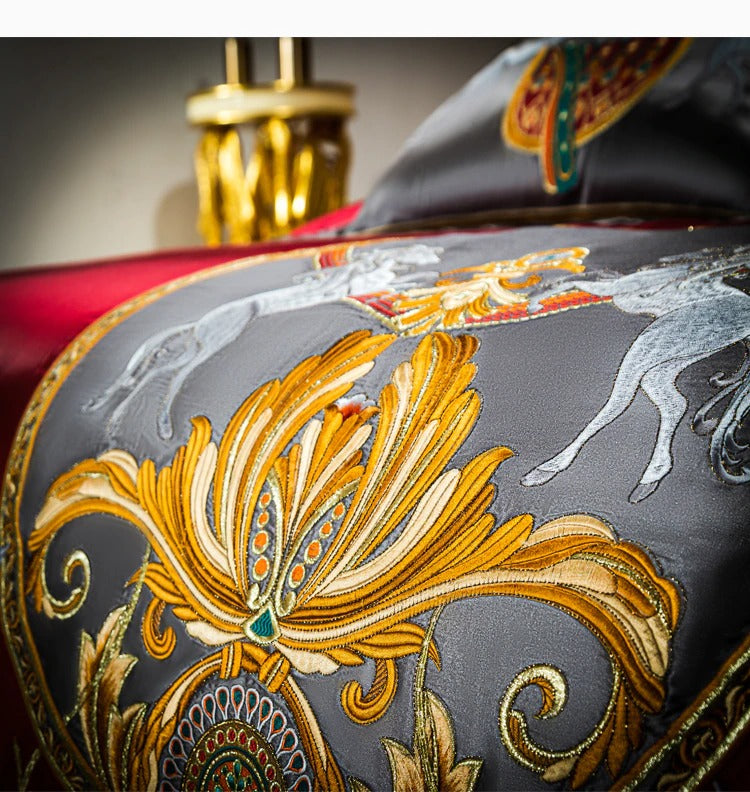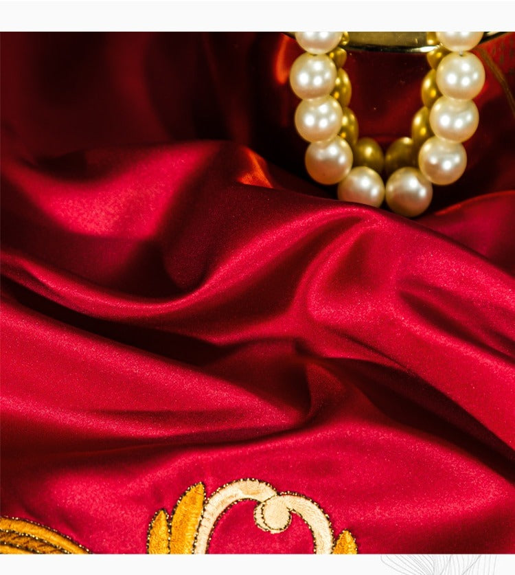 Niki Red Egyptian Cotton Embroidered Bedding Set