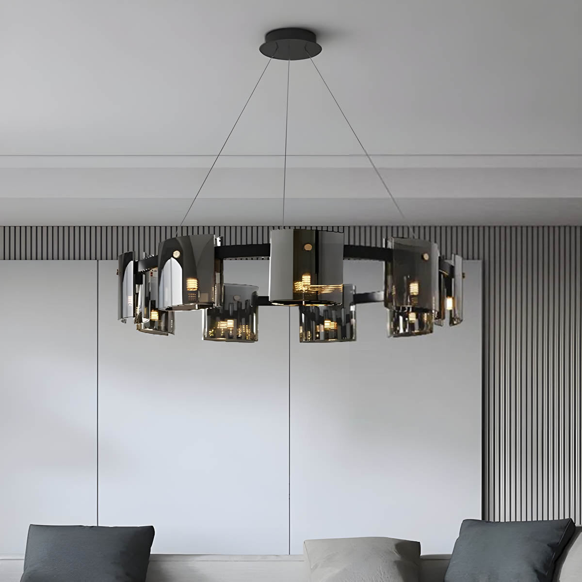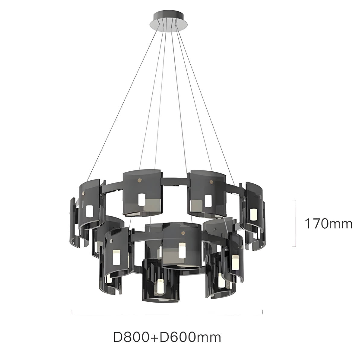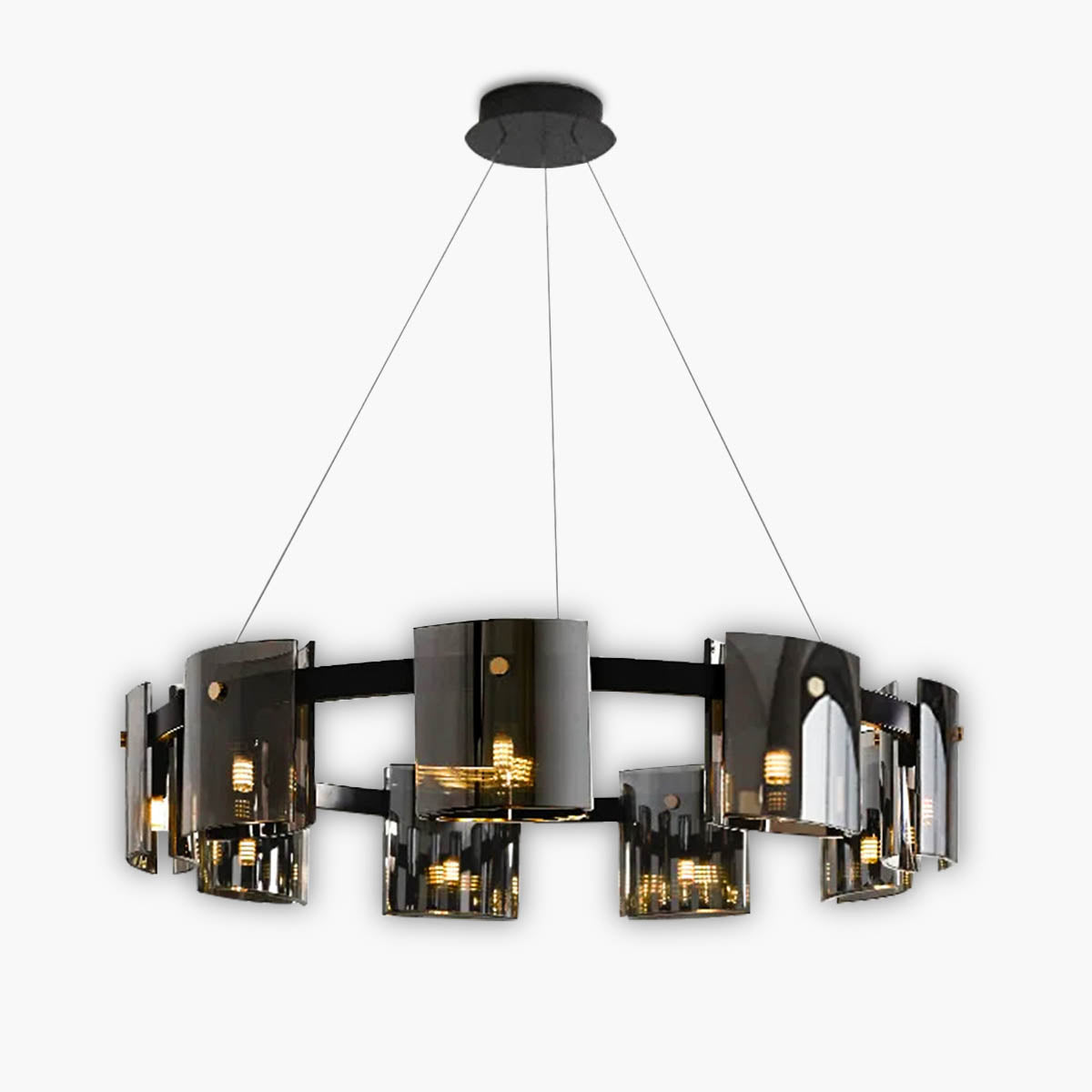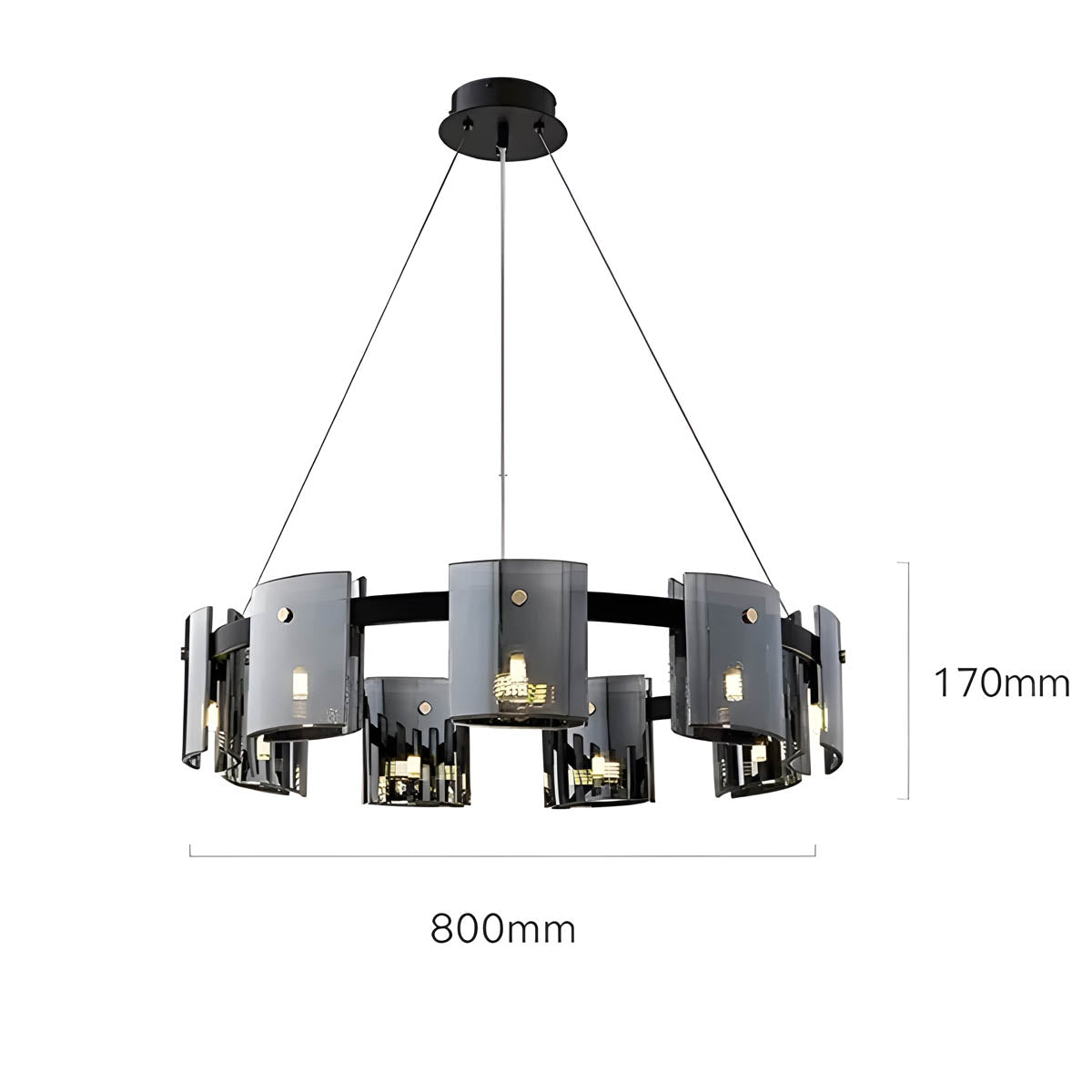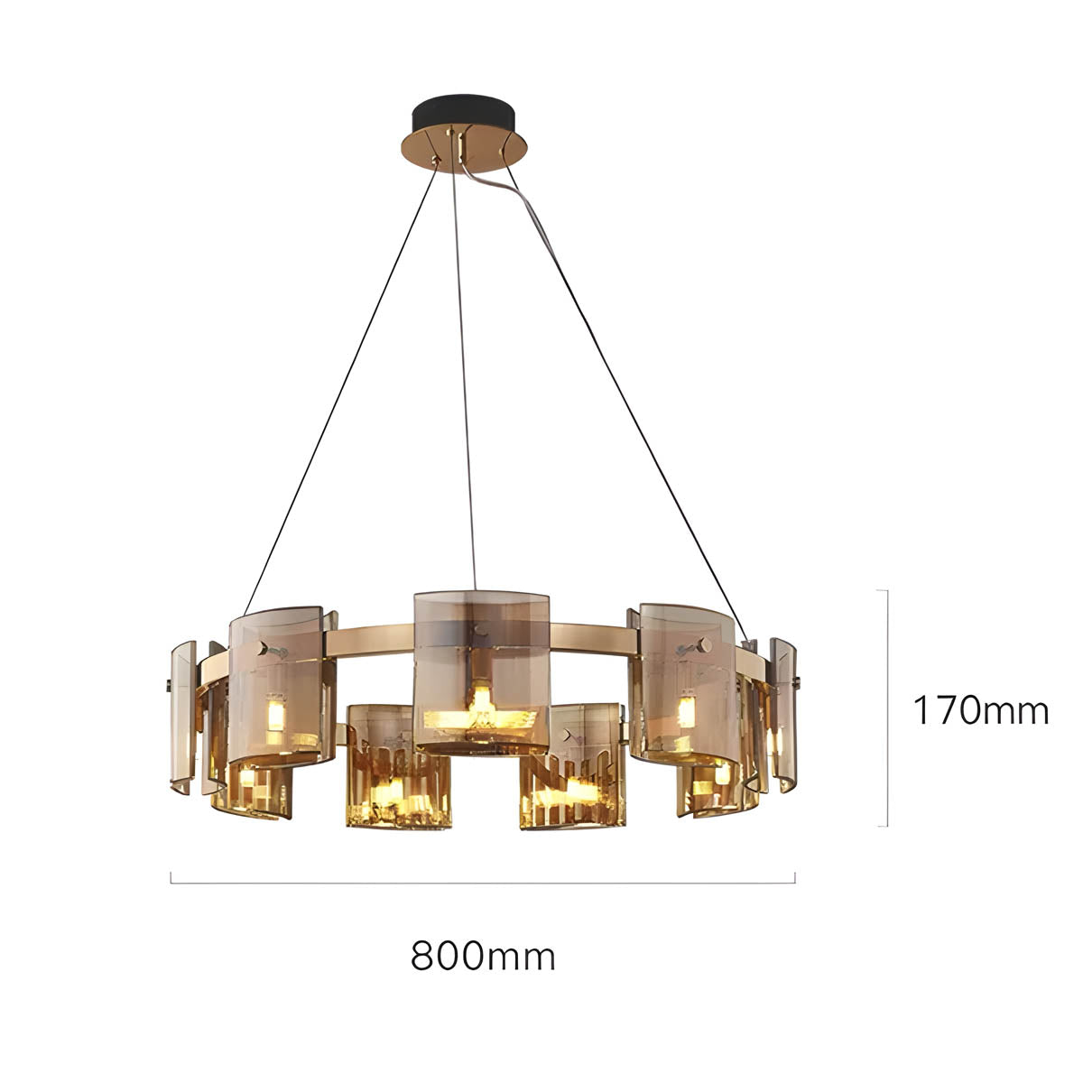 Available in exquisite smoky black and amber color options, this chandelier exudes refinement and warmth. Whether gracing a dining area, foyer, or living room, its enchanting hues cast a spellbinding glow, fostering an inviting ambiance that elevates the atmosphere of your entire space.