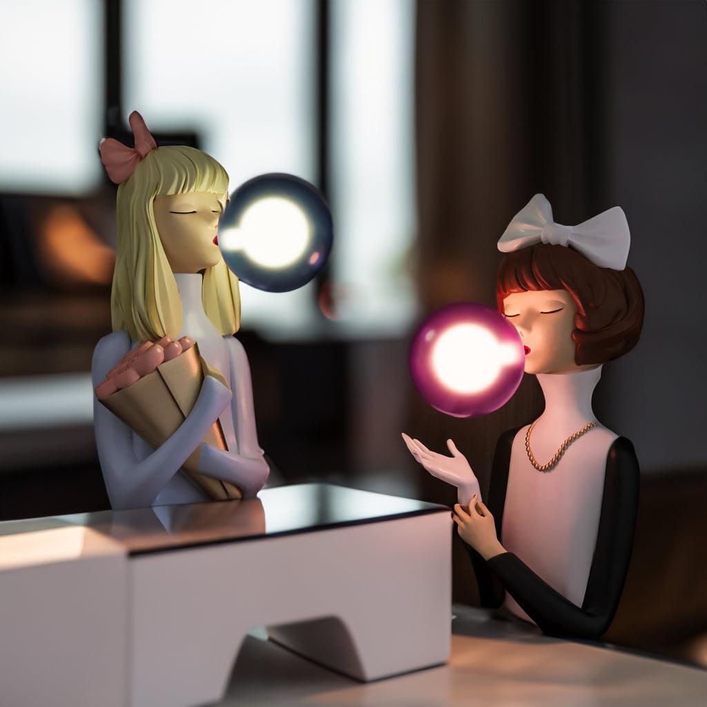 Step into the world of Parisian charm and sophistication with the Parisian Bubble Girls - Lamp Collection! This exquisite set of four lamps captures the essence of French elegance, with each sister exuding a unique personality and grace, accompanied by a mesmerizing bubble gum bubble that casts a soft and alluring light.