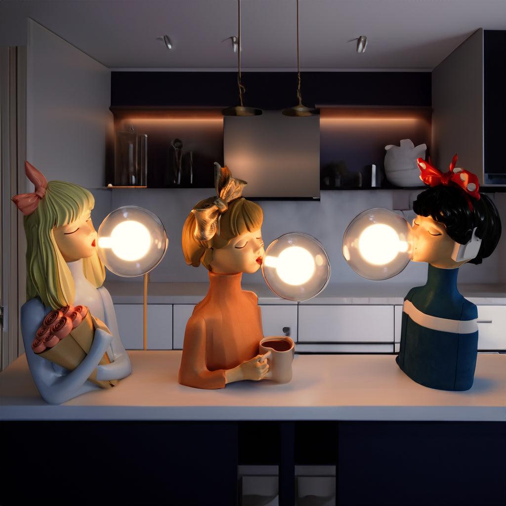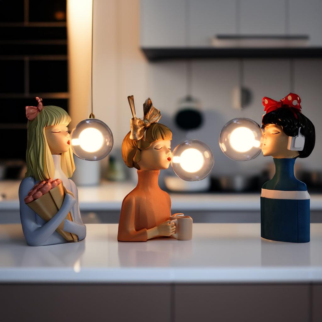Step into the world of Parisian charm and sophistication with the Parisian Bubble Girls - Lamp Collection! This exquisite set of four lamps captures the essence of French elegance, with each sister exuding a unique personality and grace, accompanied by a mesmerizing clear bubble gum bubble that casts a soft and alluring light.