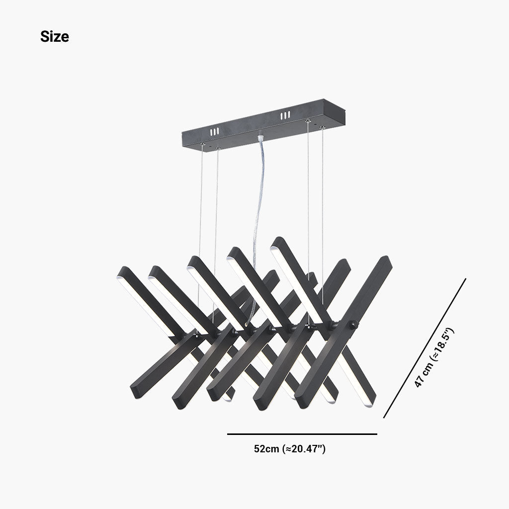 Elevate your living space with the Pendant Chandelier Elegant Key Design, a stunning fusion of contemporary style and understated elegance. Inspired by the fluid grace of a grand piano, this chandelier features sleek, black aluminum elements meticulously arranged to mimic the appearance of piano keys, creating a striking focal point that commands attention. Its transformative design not only enhances the aesthetic appeal of your dining room but also reflects a commitment to modern craftsmanship and sophistication.