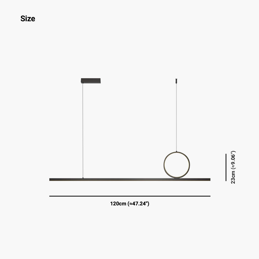 Embrace the allure of Scandinavian simplicity with our Pendant Light Minimalist Copper Elegance, a striking fusion of geometric sophistication and modern functionality. Artfully designed, this exquisite light fixture combines a sleek strip and a gracefully suspended ring, creating a visual harmony that enhances any space. The warm glow emitted from its integrated LED source radiates a sense of tranquility, inviting you to unwind in a beautifully lit atmosphere. Its timeless aesthetic seamlessly complements a variety of interiors, making it ideal for a cozy living room, an intimate dining area, or a serene bedroom retreat.