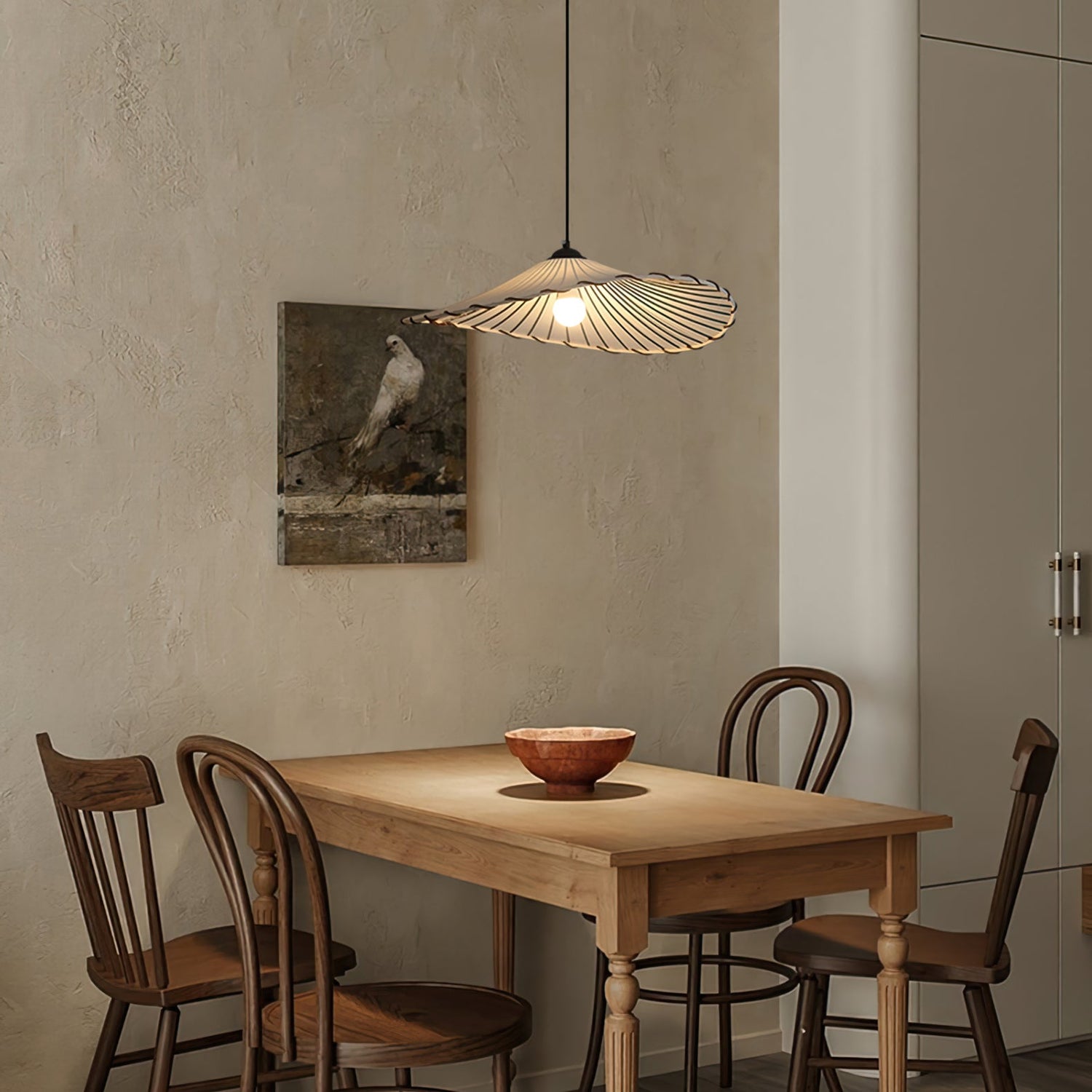 The Petite Fabric Pendant Lamp blends delicate craftsmanship with a striking, modern design. Made from lightweight fabric and sleek metal, this pendant light mimics the graceful curve of a fan, adding an airy and sculptural element to your space. The soft, flowing lines of the fabric shade create a gentle diffusion of light, perfect for creating a warm and inviting ambiance. Whether placed above dining areas, living rooms, or entryways, this lamp's elegant yet minimalist design makes it a versatile piece for contemporary and artistic interiors.