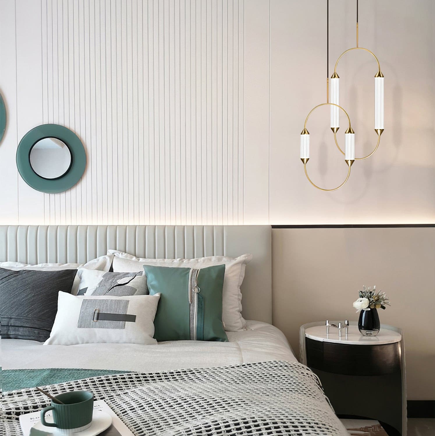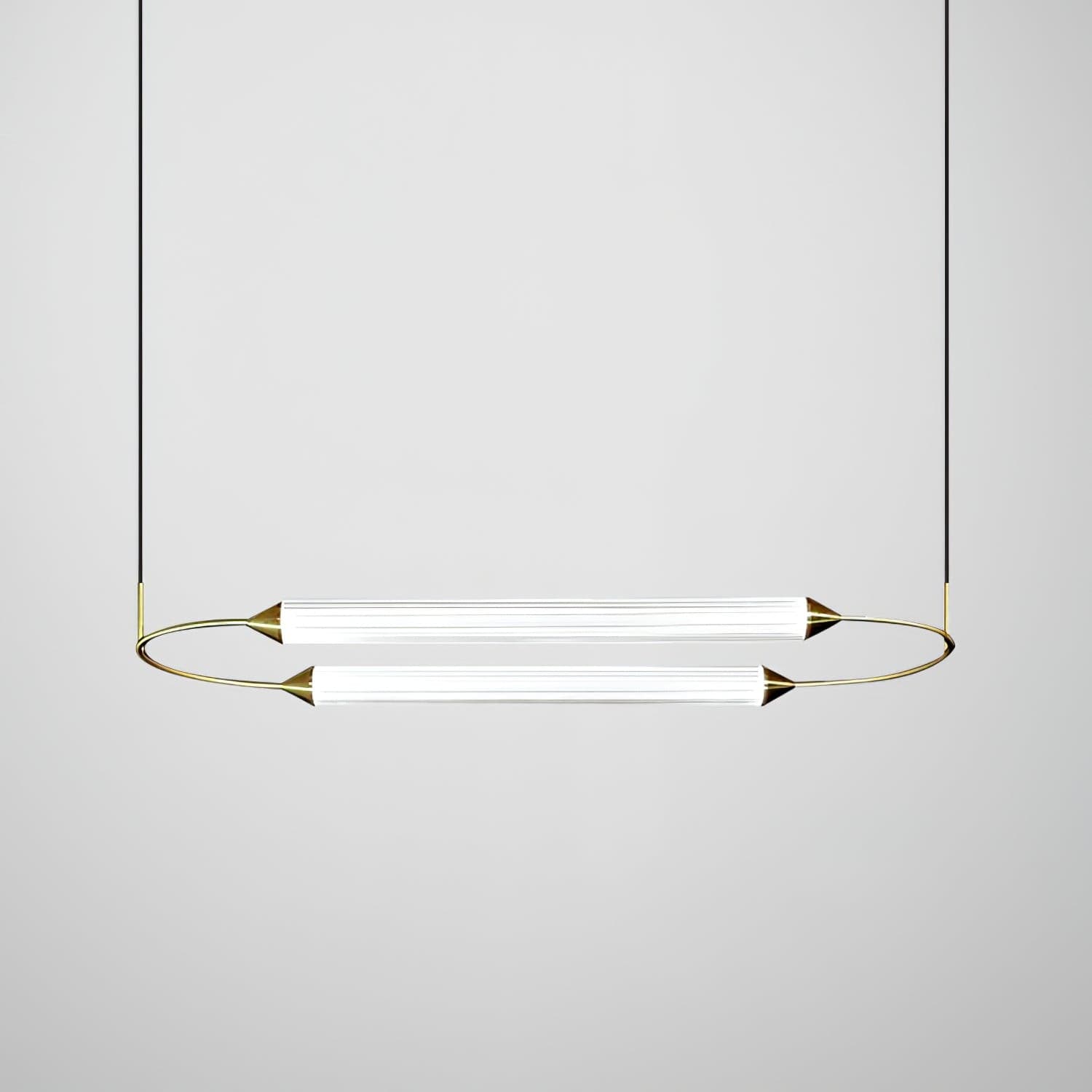 The Radiant Arc Duo Column Pendant Lamp by Dekorfine is a stunning embodiment of modern elegance. Featuring two slender columns crafted from premium glass, elegantly framed by a sleek golden arc, this pendant lamp enhances the ambiance of any room. Perfect for dining areas, living spaces, or entryways, the Radiant Arc Duo Column Pendant Lamp not only brightens your home but also serves as a captivating piece of contemporary art.Illuminate your space with this exquisite blend of style and functionality, designed to make a lasting impression.